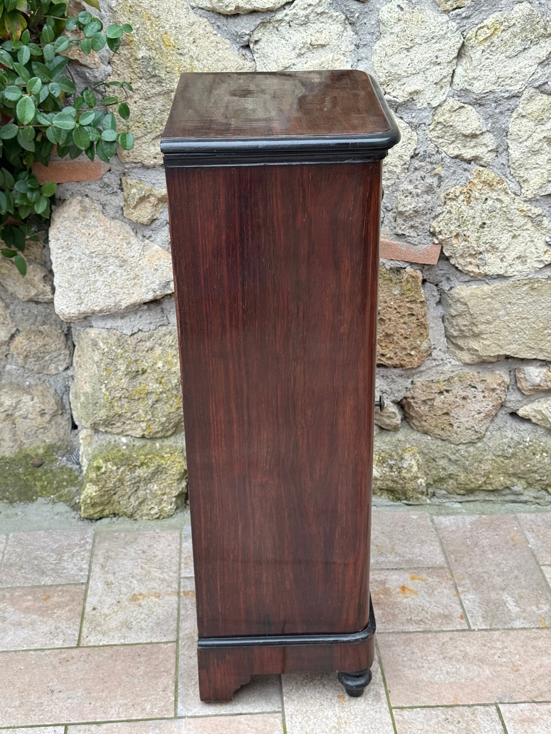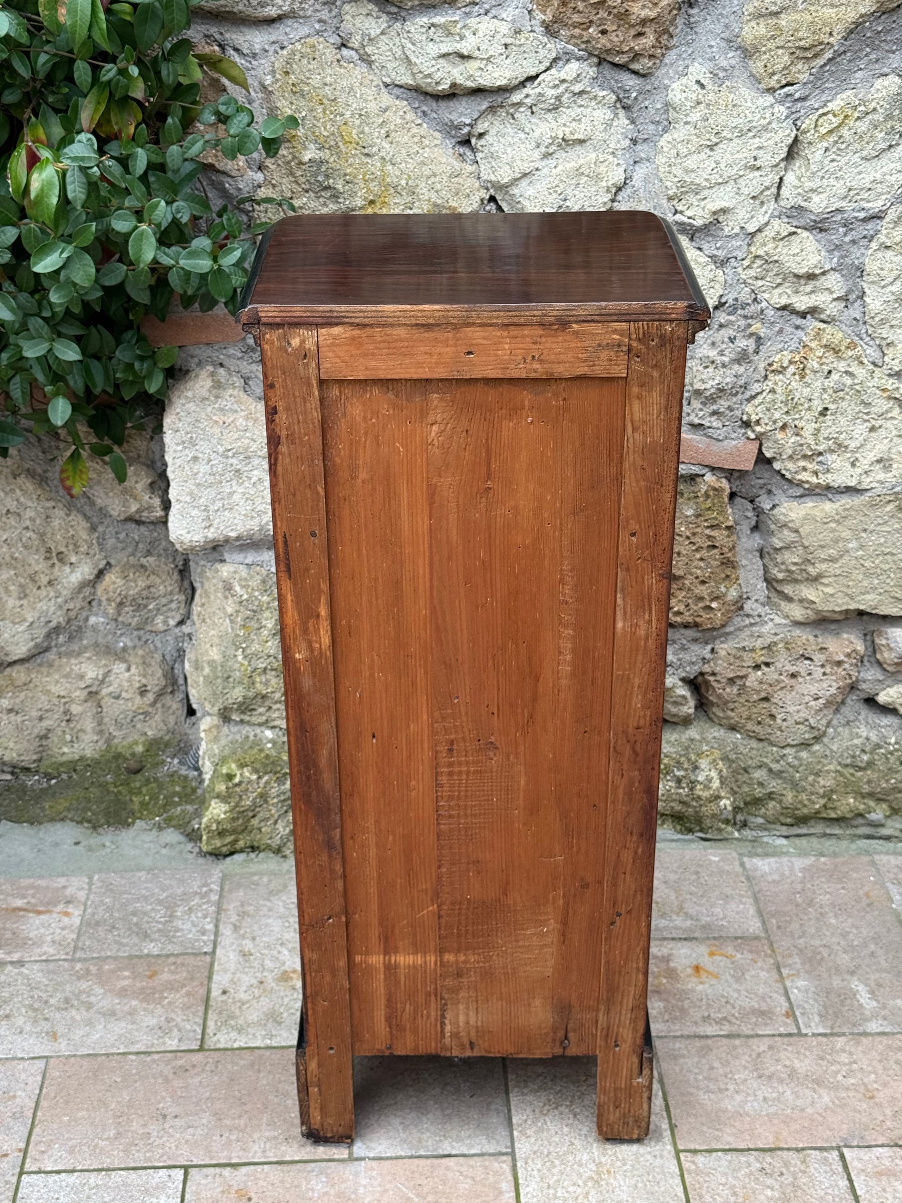 Comodino antico a colonna con anta e due cassetti Italia prima metà Novecento