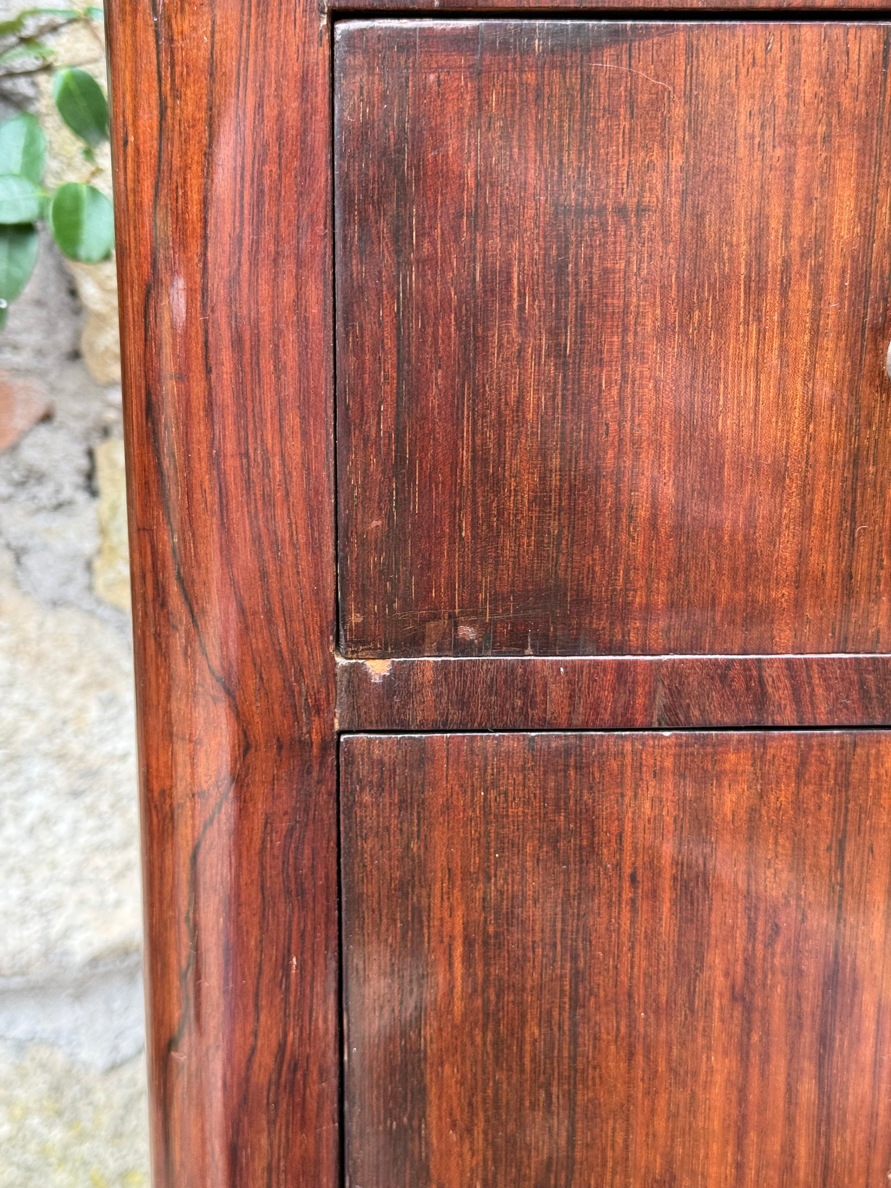 • Condizioni: Buone condizioni generali, con normali segni del tempo e dell'utilizzo, in alcuni punti non è presente l'impiallacciatura. Sul retro sono presenti fori da tarlo non attivi.