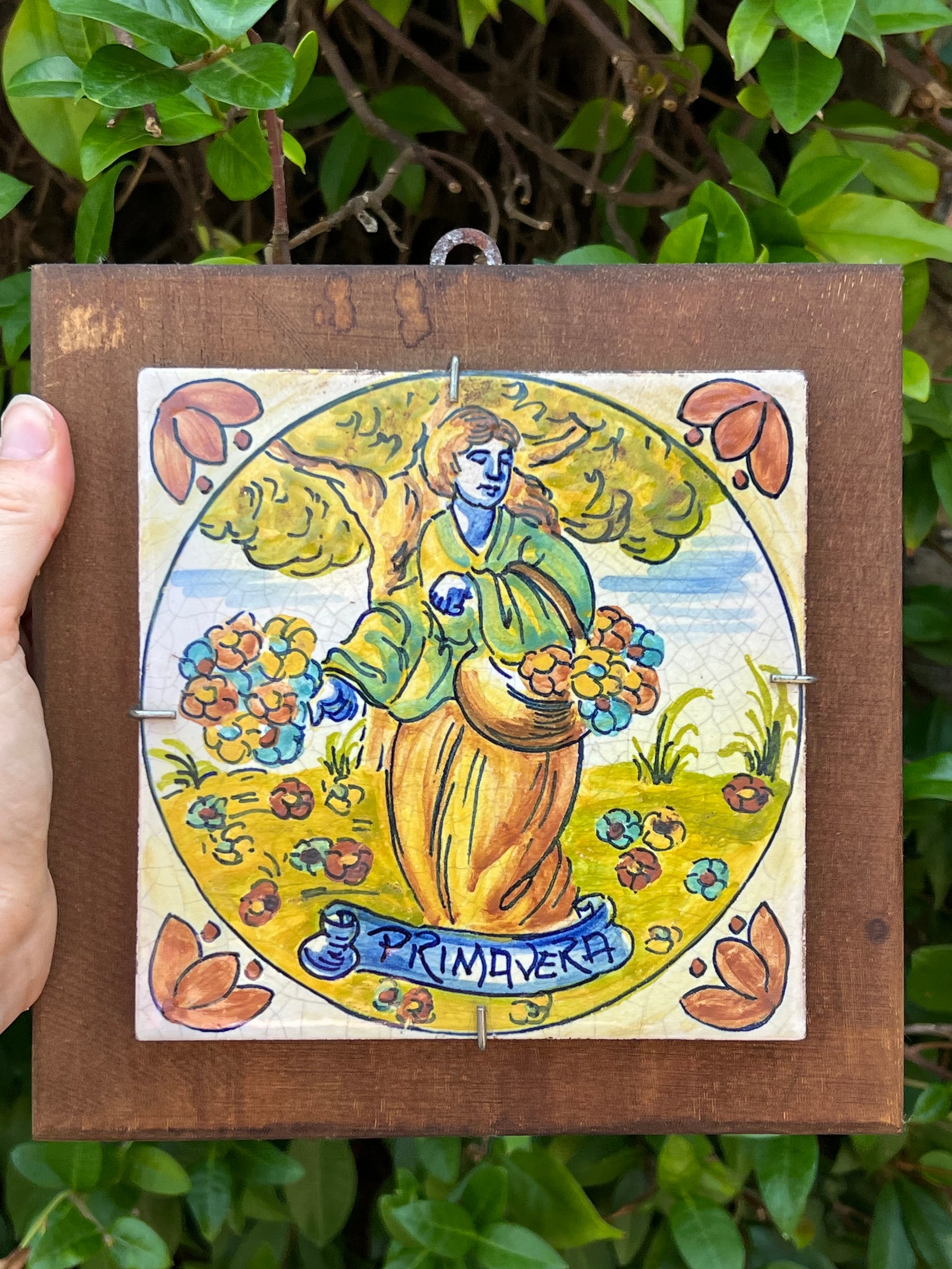 • Materiale: Ceramica smaltata e dipinta a mano, supporto in legno