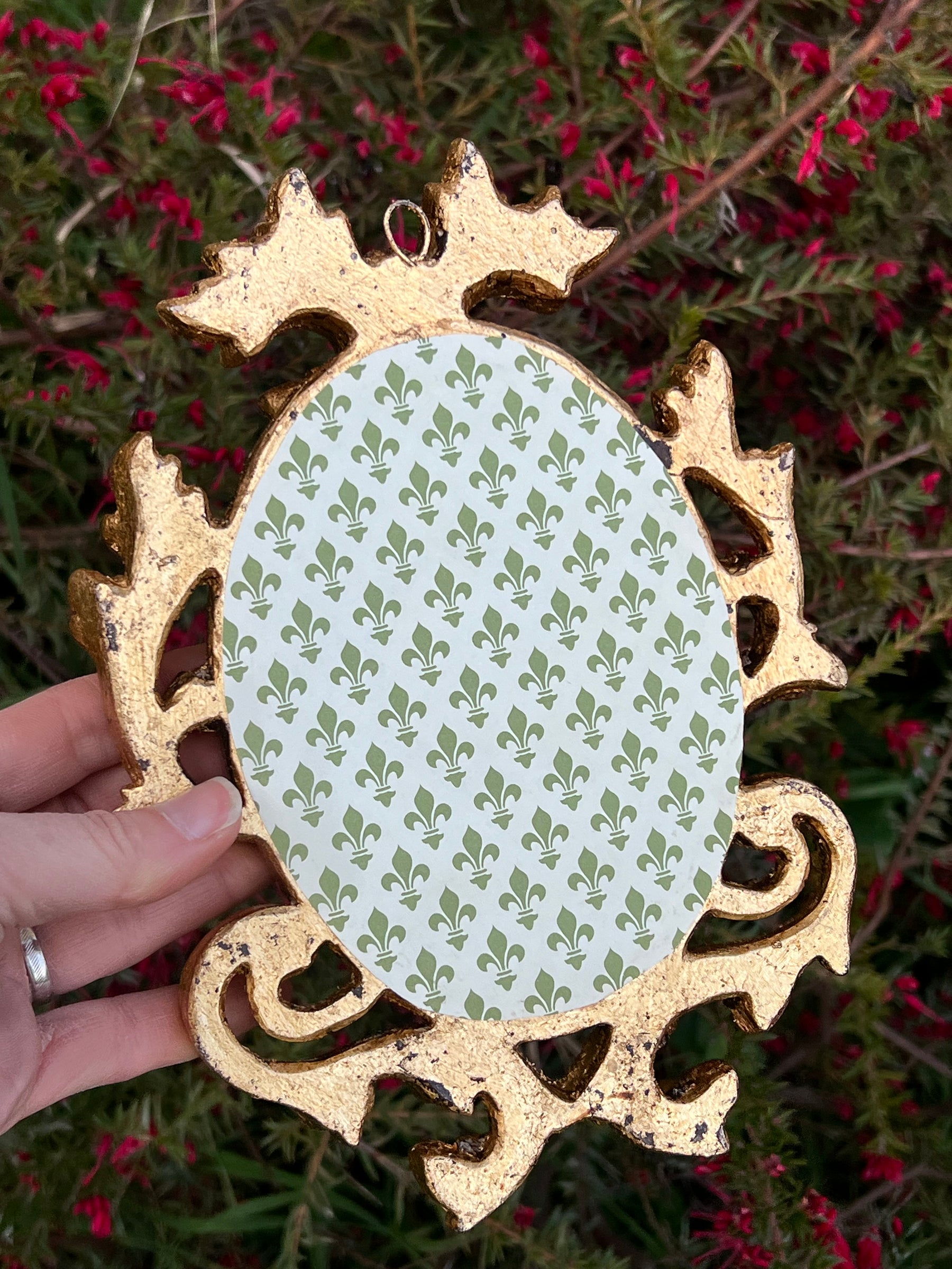 Specchietto di misure 16x21 cm, di ispirazione barocca con cornice intagliata e dorata a foglia oro. Lungo tutta la cornice è presente un elaborato decoro fogliaceo. Con una maestria che trascende il tempo, i nostri specchietti sono capolavori realizzati a mano che catturano l'essenza dell'eleganza barocca. Ogni cornice, finemente scolpita e rifinita con foglia d'oro, è frutto di tecniche di antichizzazione che regalano un'anima vissuta e senza tempo ad ogni pezzo.