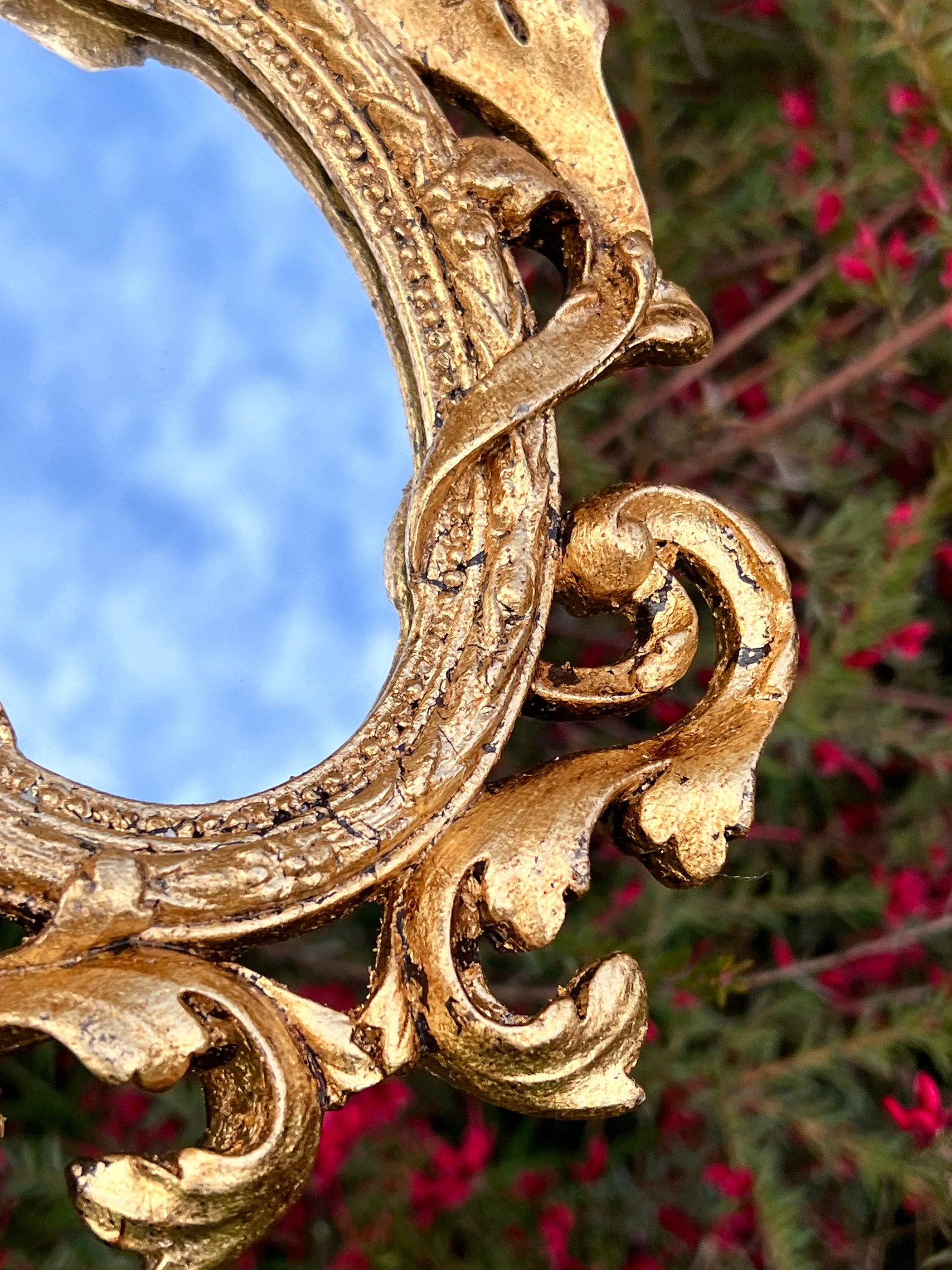 Con una maestria che trascende il tempo, i nostri specchietti sono capolavori realizzati a mano che catturano l'essenza dell'eleganza barocca. Ogni cornice, finemente scolpita e rifinita con foglia d'oro, è frutto di tecniche di antichizzazione che regalano un'anima vissuta e senza tempo ad ogni pezzo.