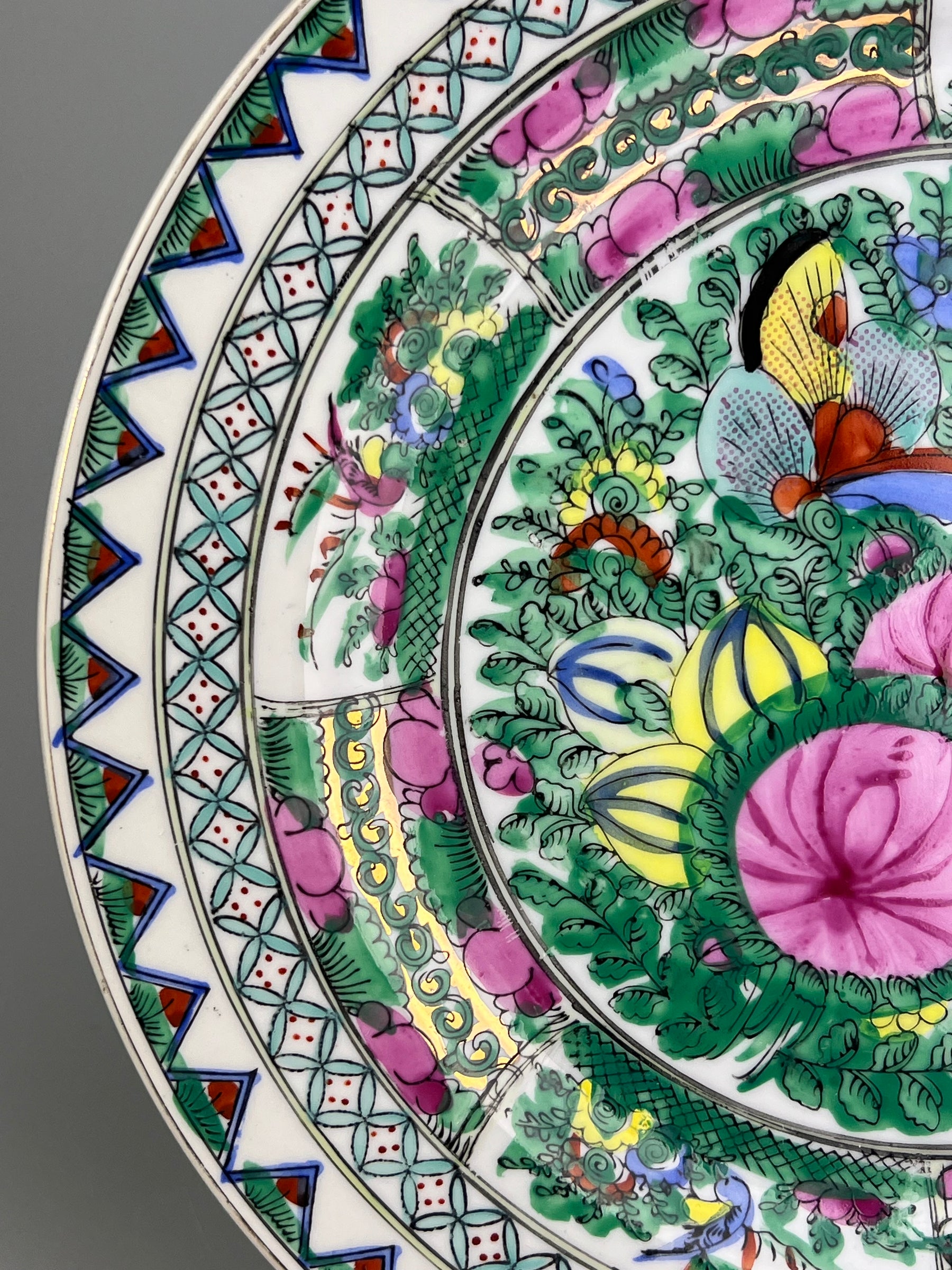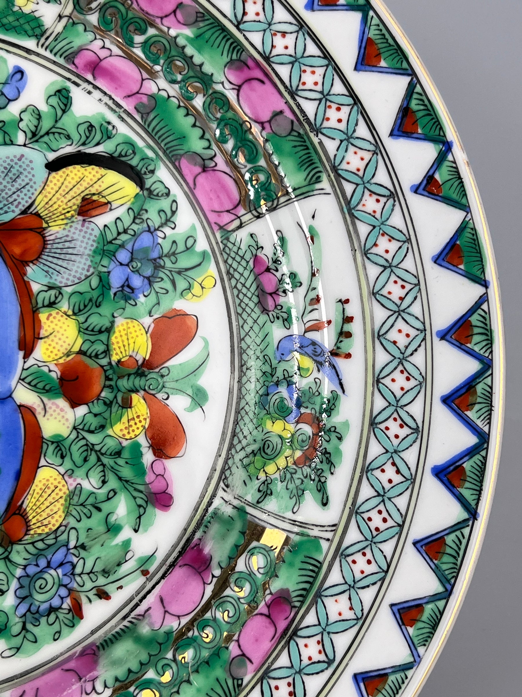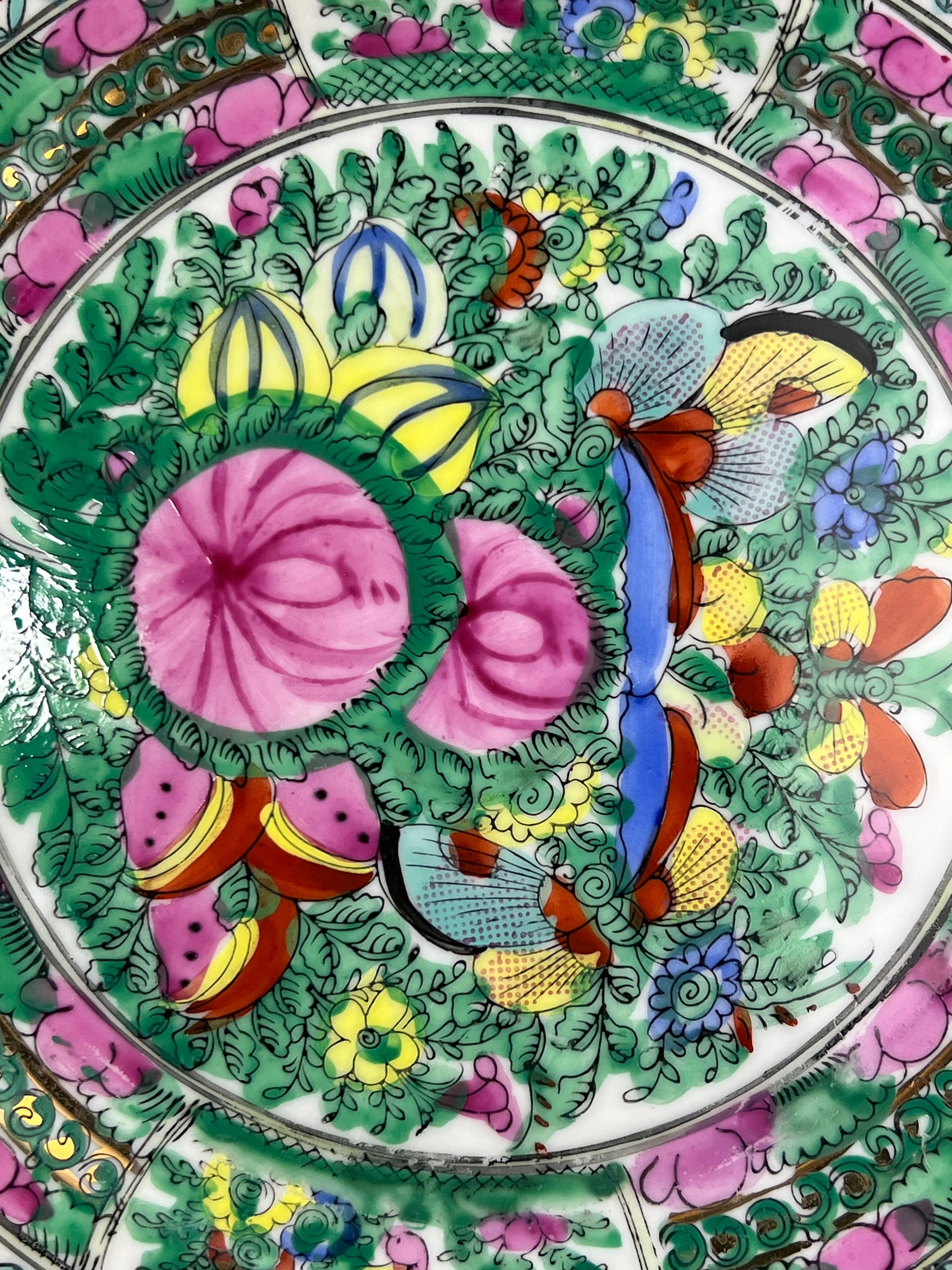 Piatto in porcellana cinese decorato a mano stile "Famille Rose"