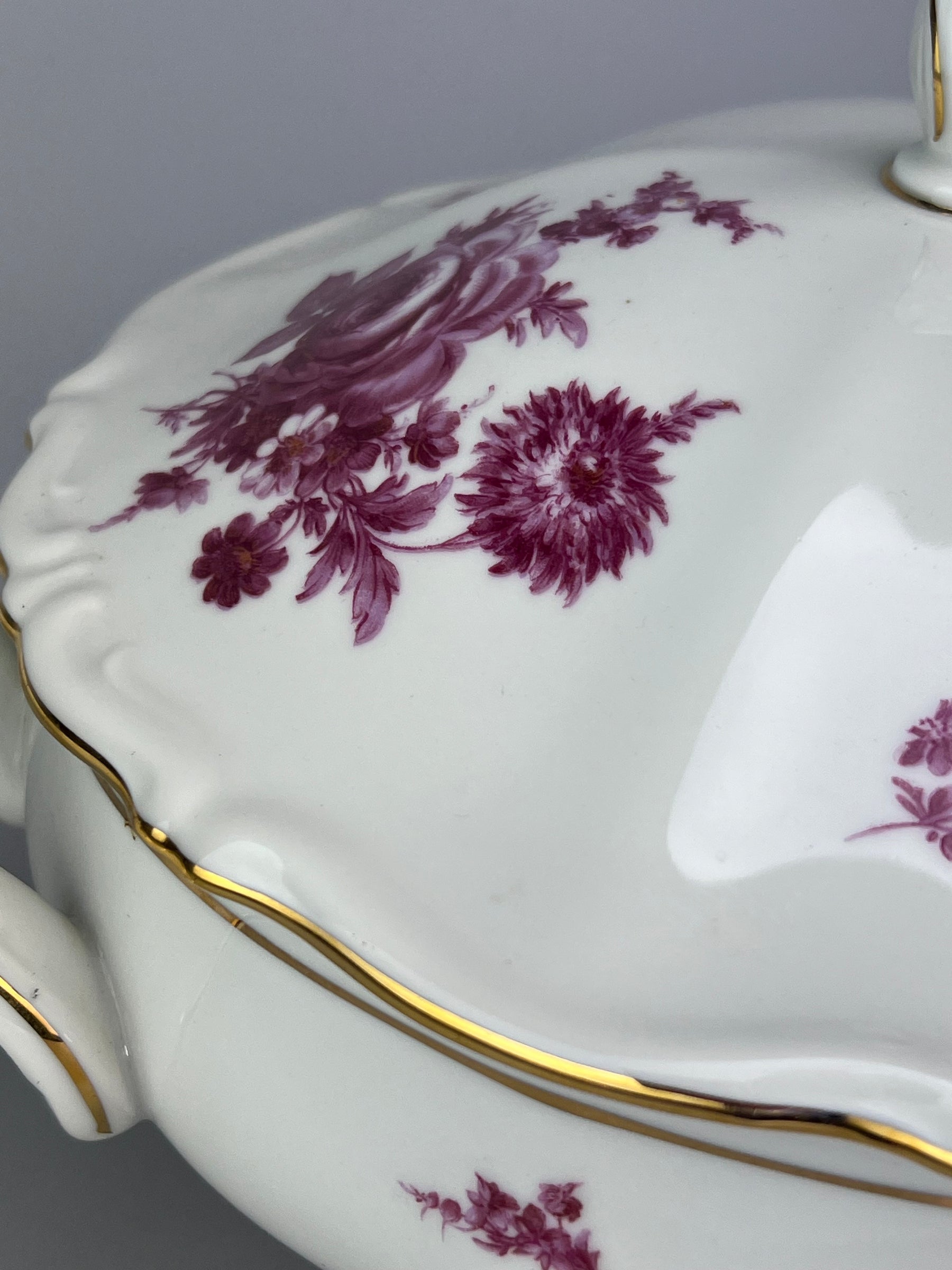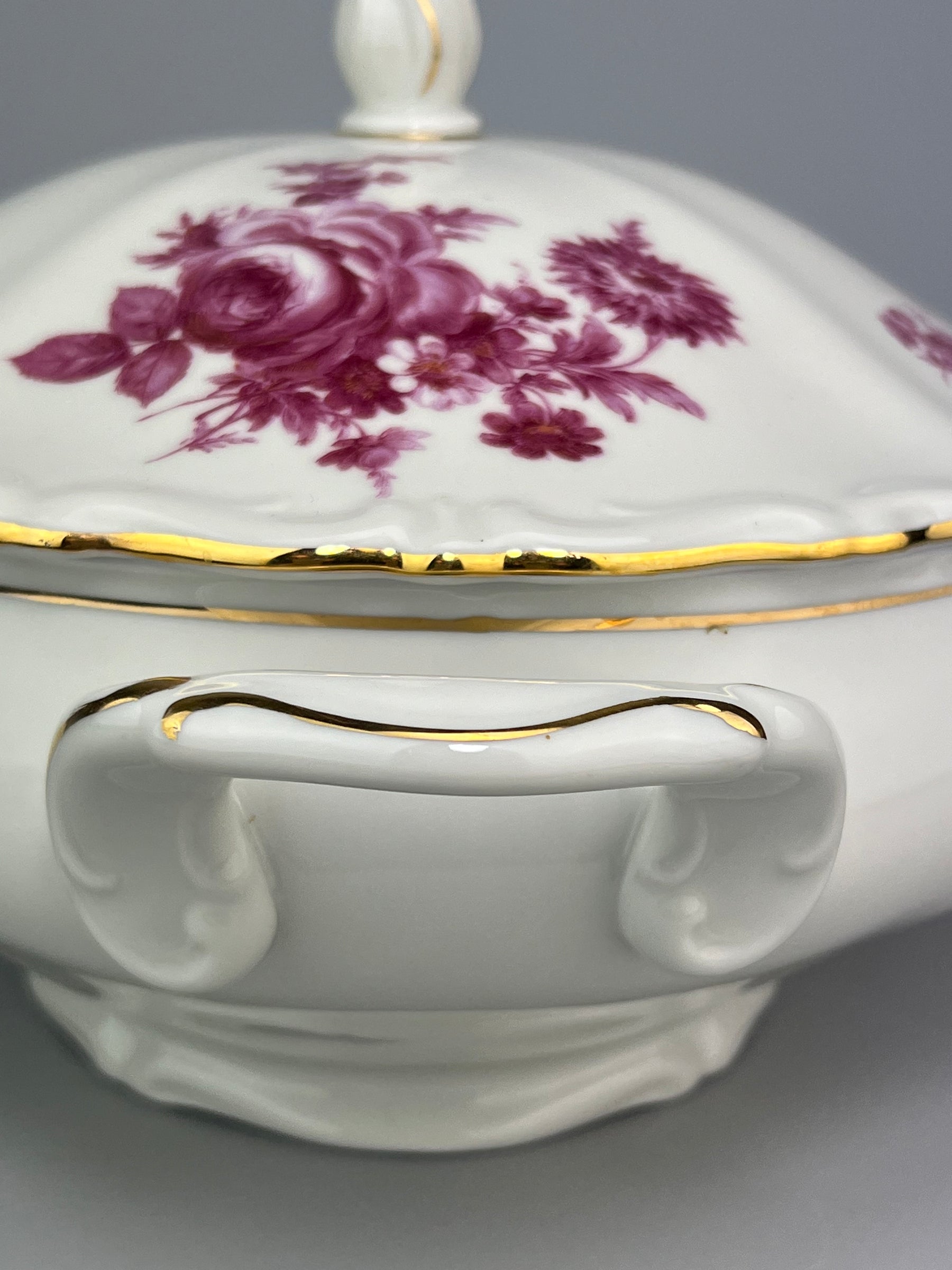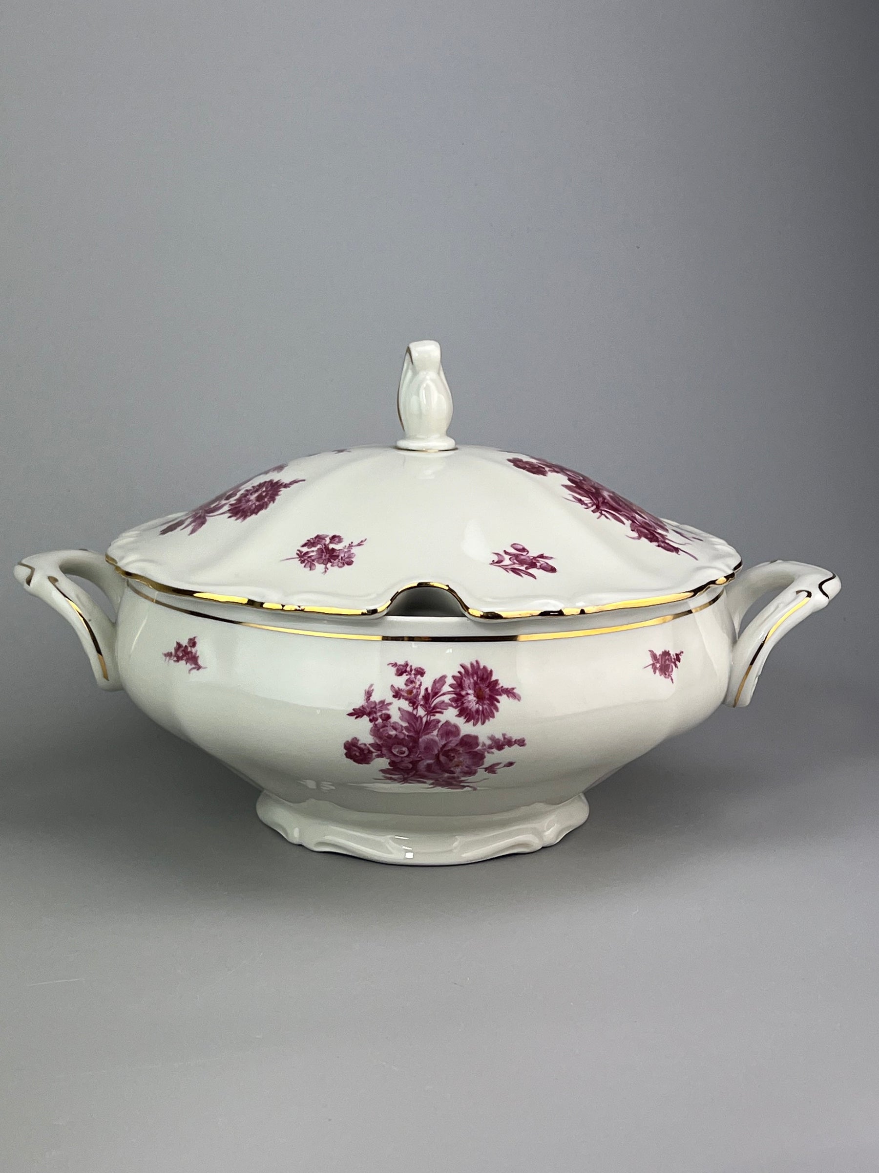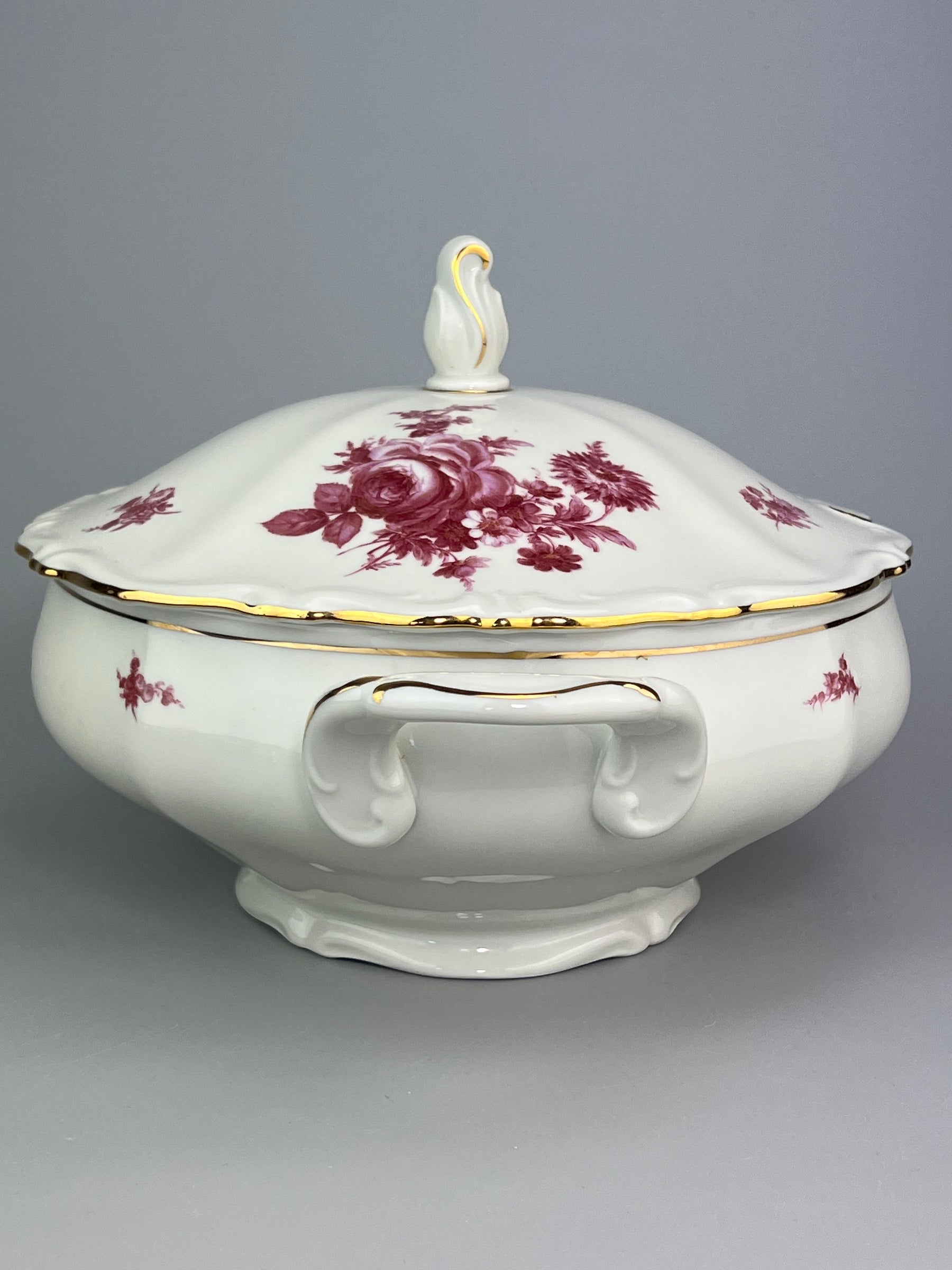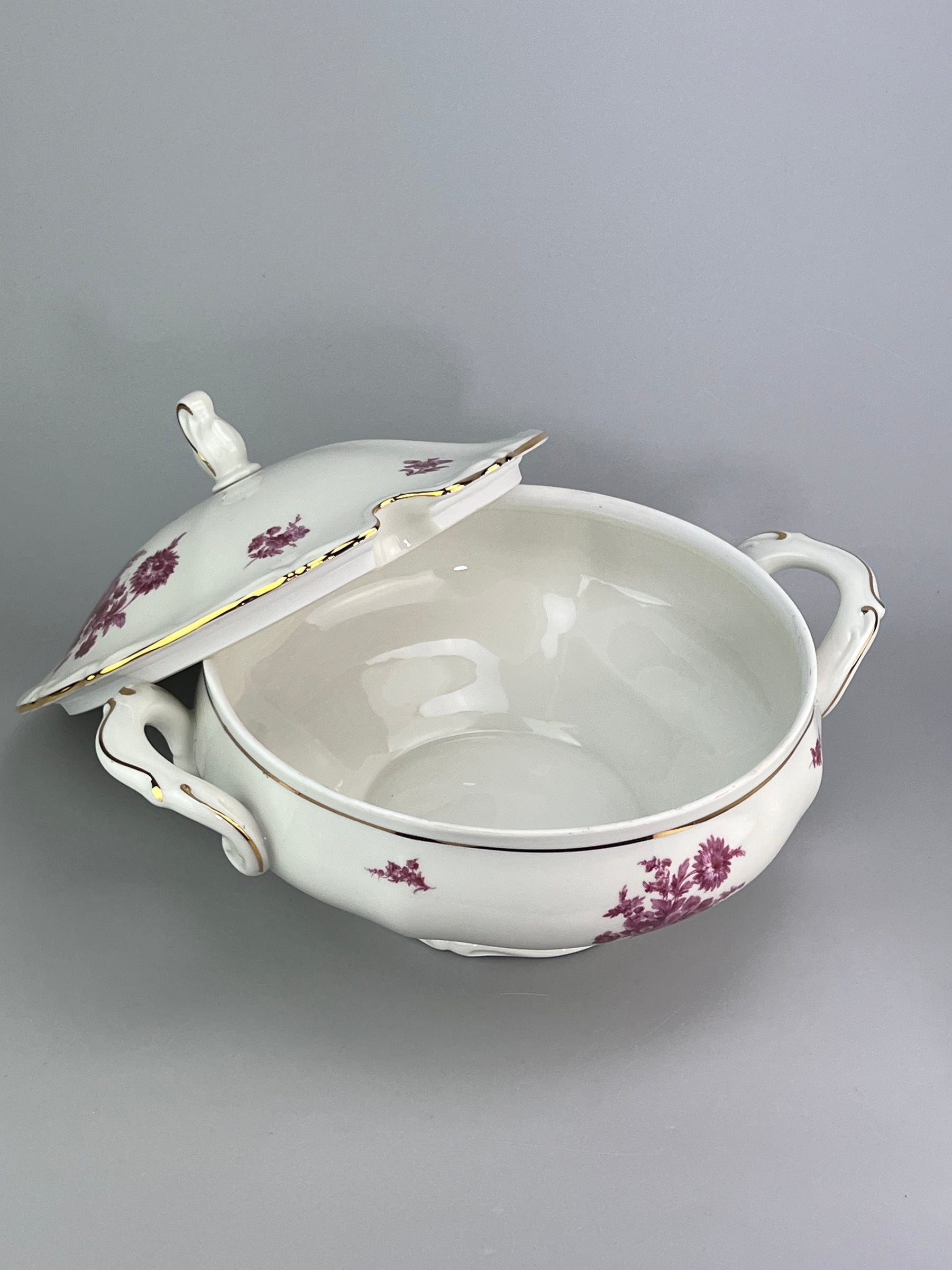 Zuppiera vintage in porcellana Bavaria decoro rosso rubino