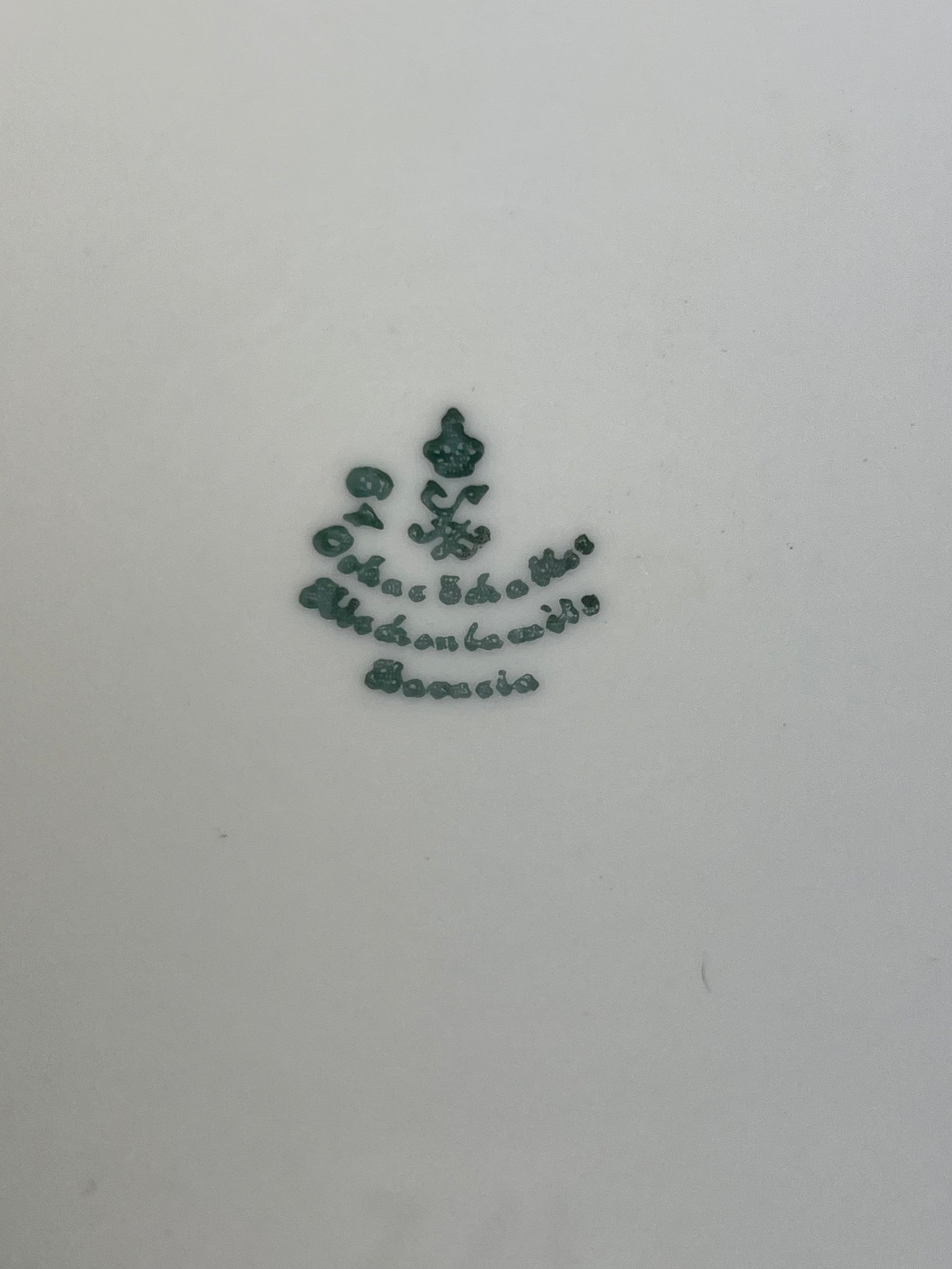 Elegante zuppiera con coperchio in fine porcellana di Bavaria, decorata con raffinati motivi floreali in rosso rubino e profili in oro zecchino. Il manico del coperchio presenta un’elegante forma sagomata a bocciolo, mentre i manici laterali sono finemente modellati e rifiniti a mano. La forma sinuosa e la fascia ondulata del bordo conferiscono un tocco romantico e senza tempo.