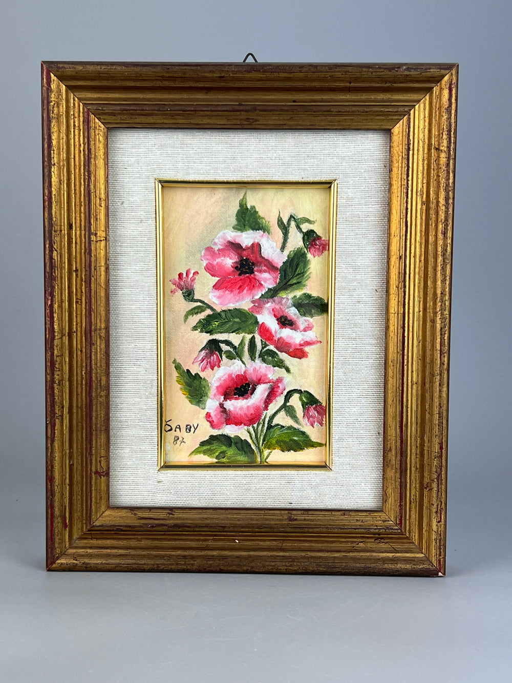 Quadro olio su tela raffigurante dei fiori di colore rosa su uno sfondo chiaro. Un pezzo unico che trasmette eleganza e romanticismo, perfetto per chi ama l’arte floreale o desidera un elemento decorativo dal fascino intramontabile.