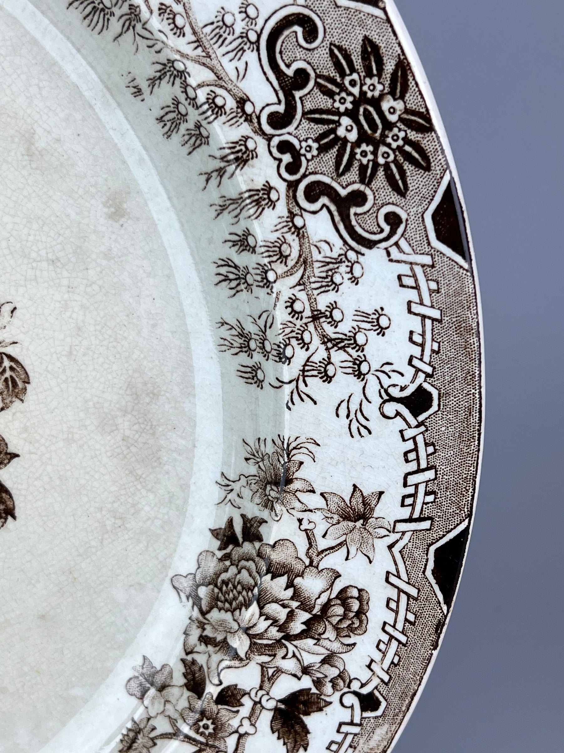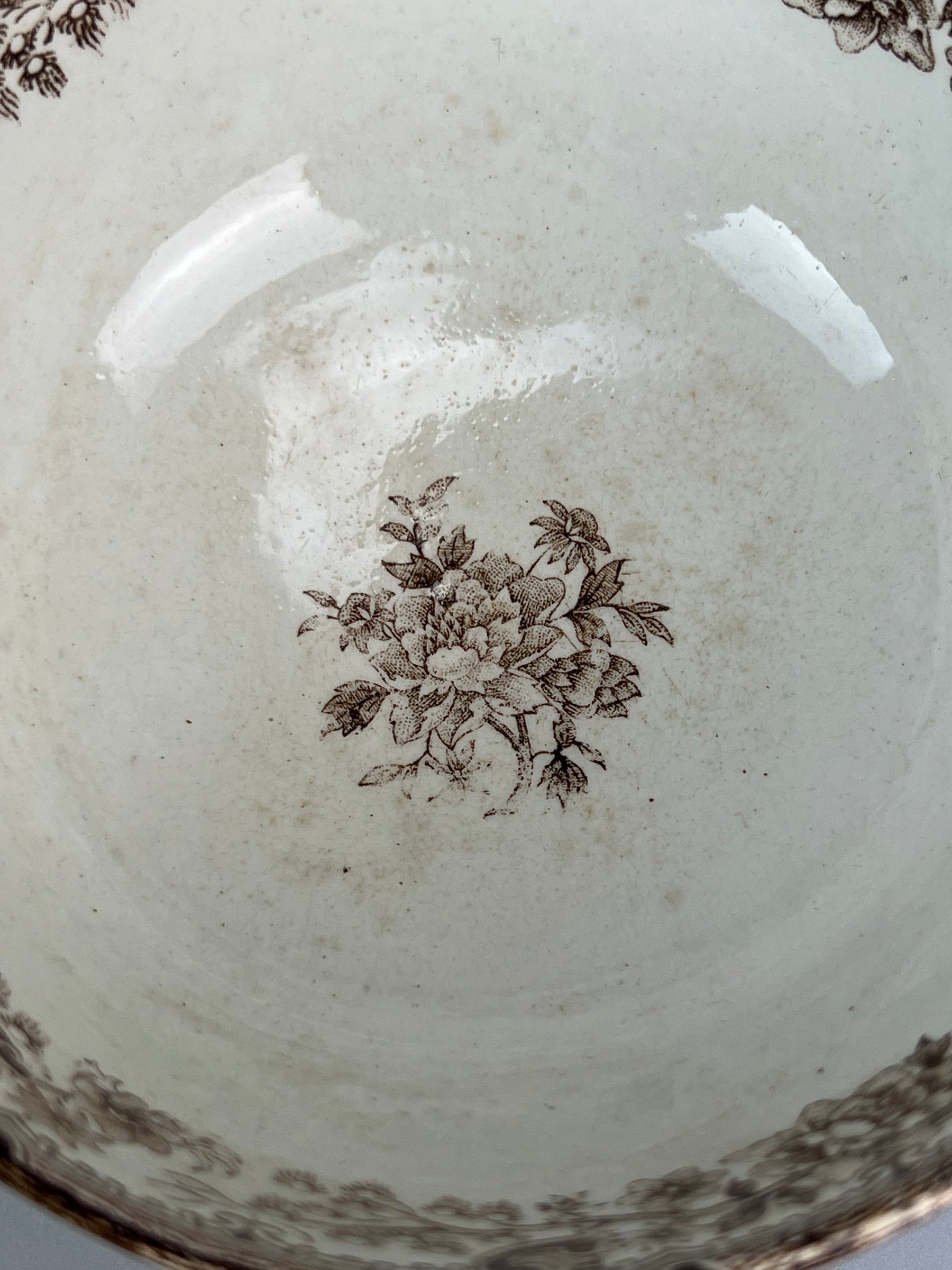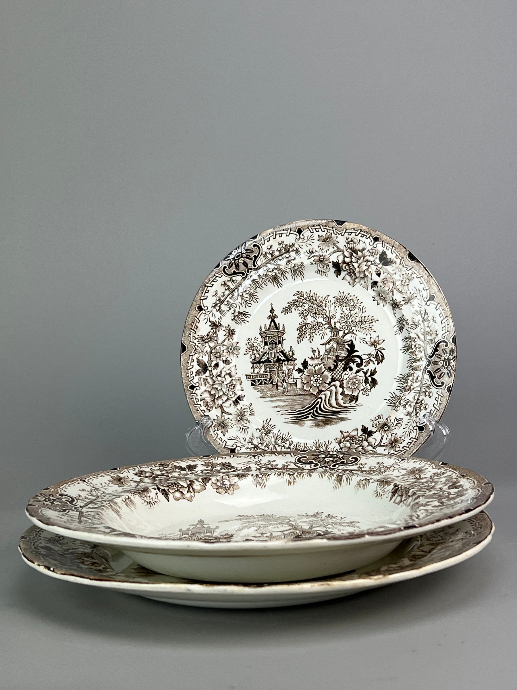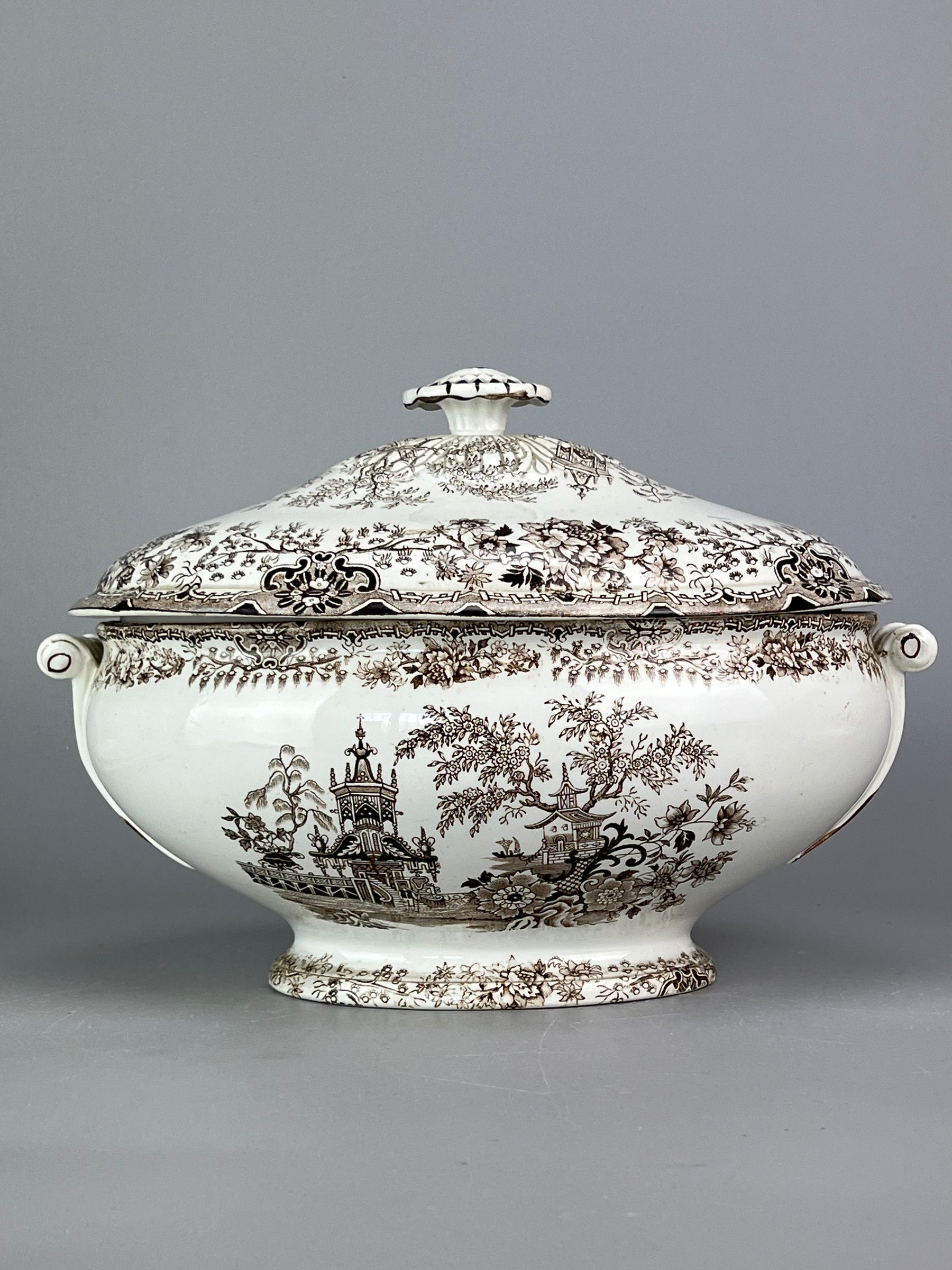 Servizio di piatti vintage SCR Colandine in porcellana con decoro marrone seppia, completo di zuppiera
