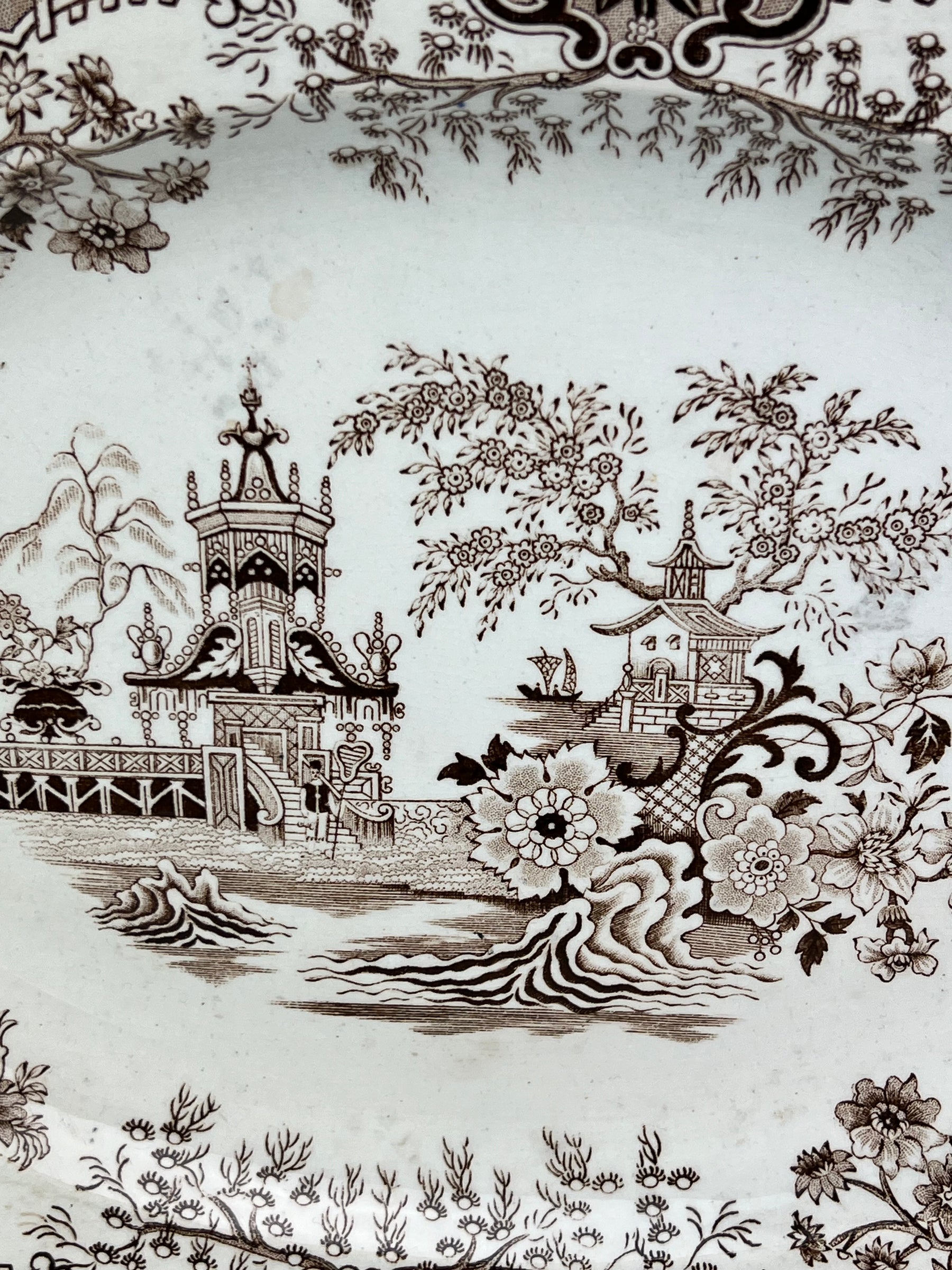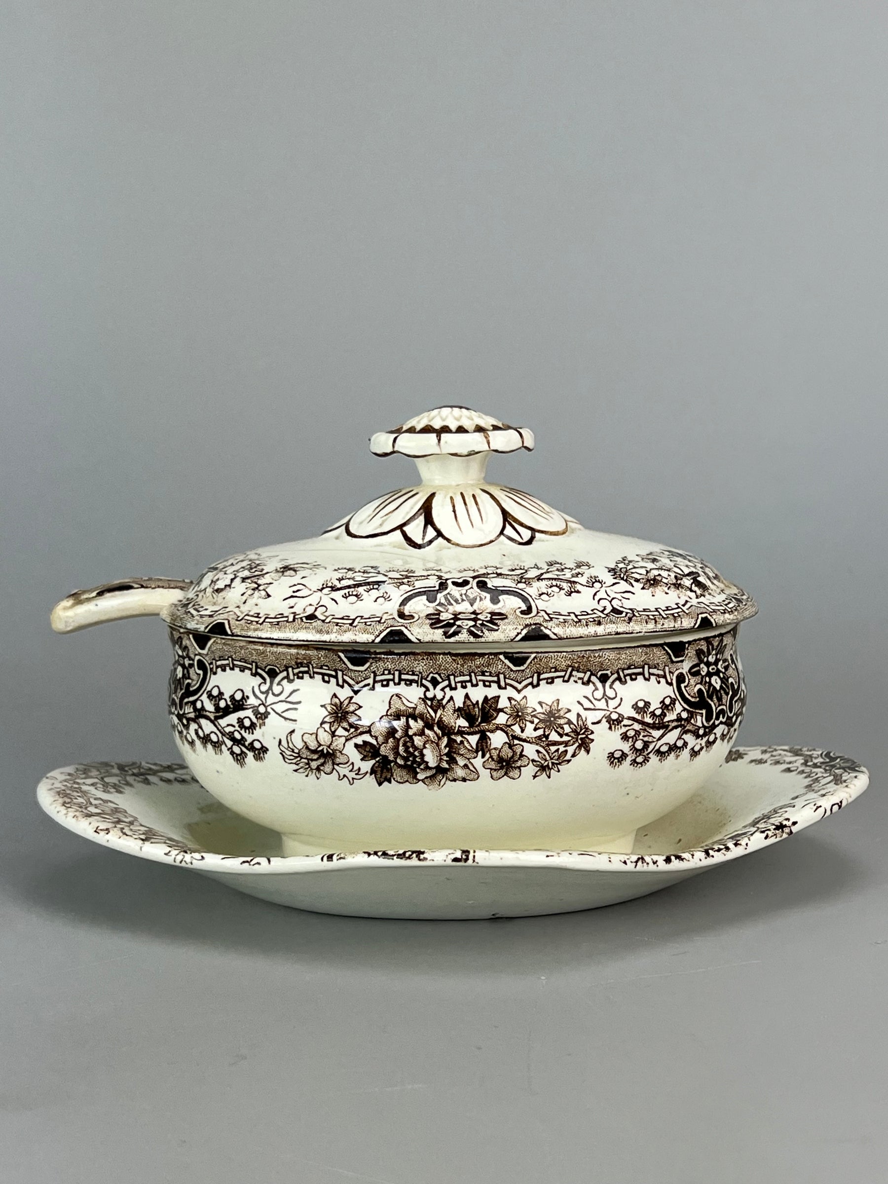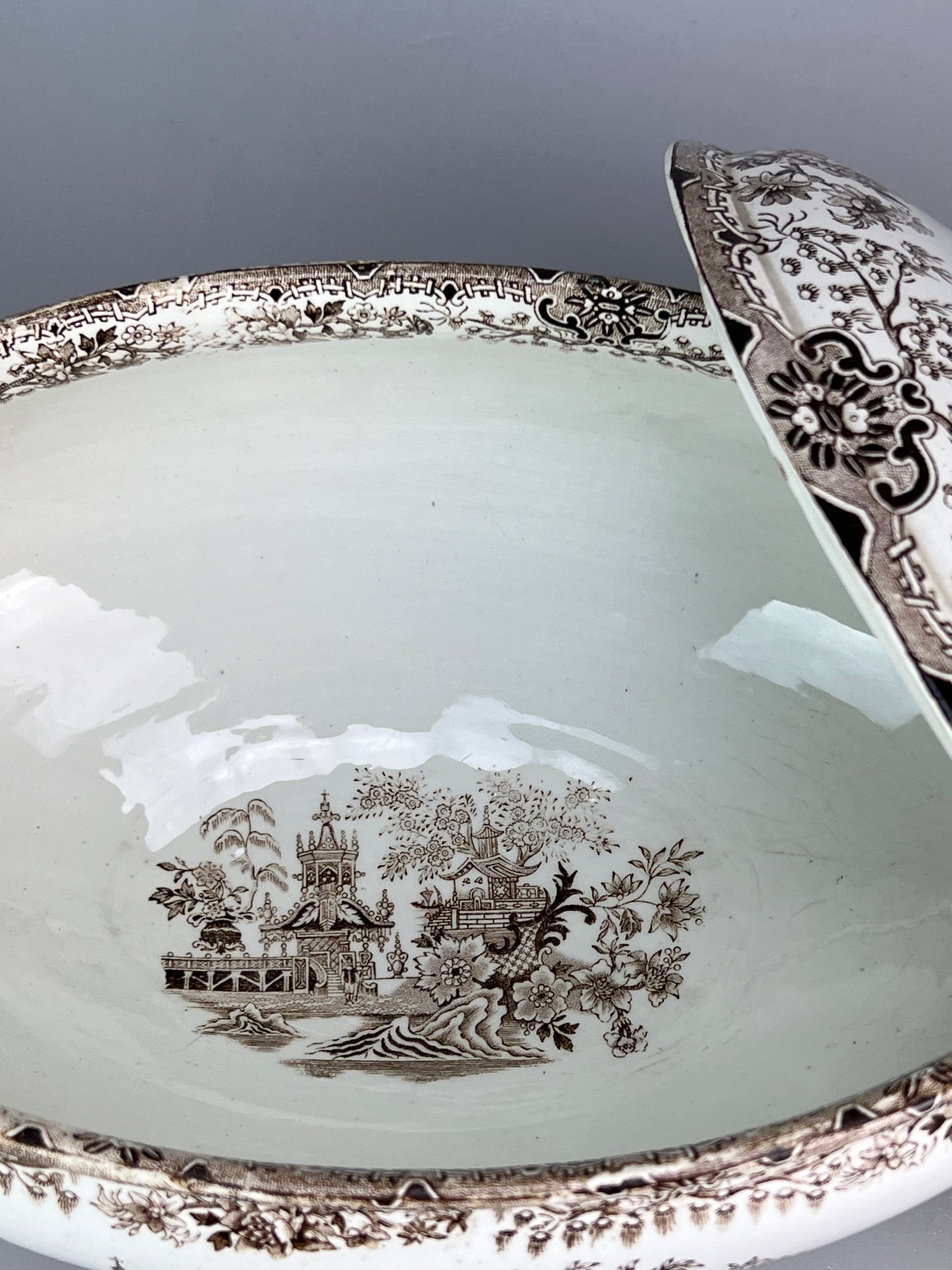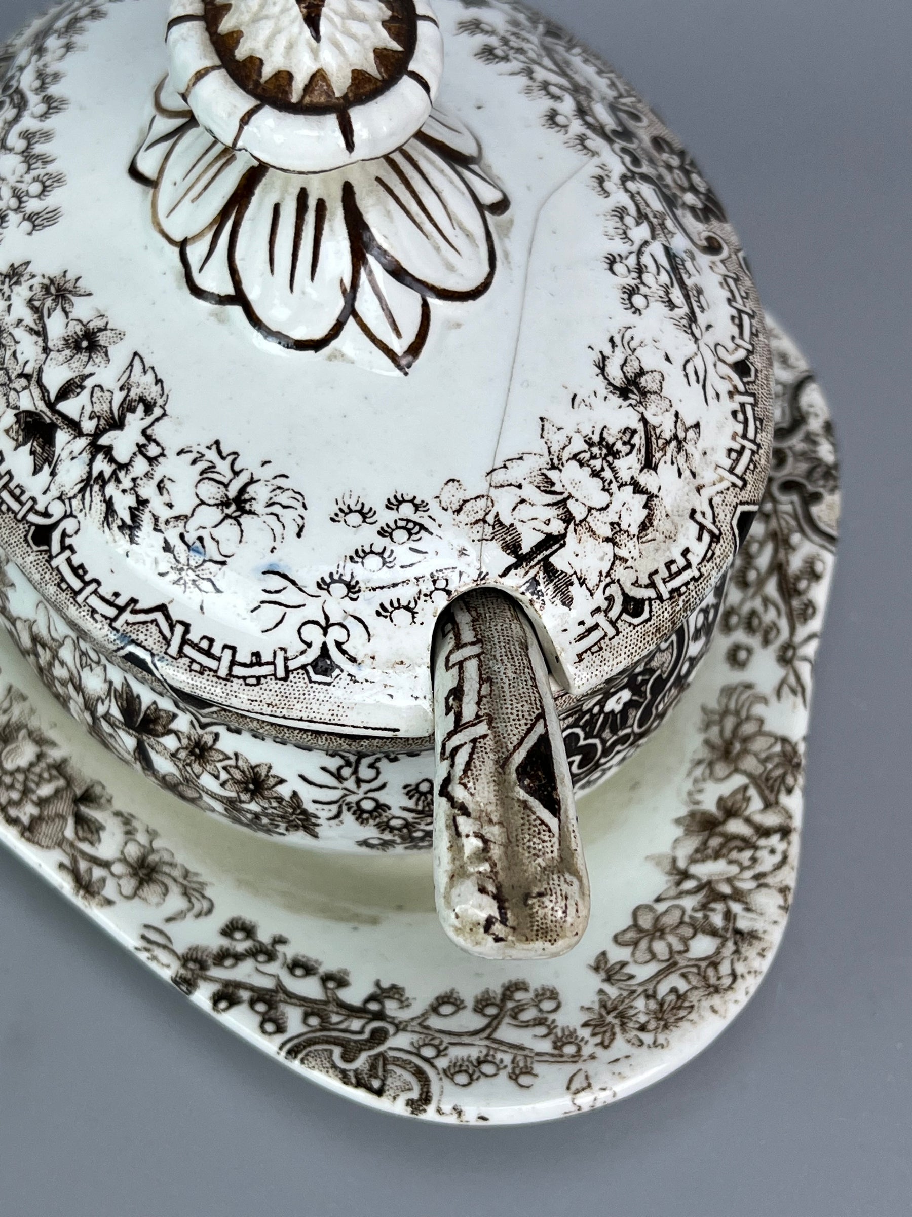 Servizio di piatti vintage SCR Colandine in porcellana con decoro marrone seppia, completo di zuppiera