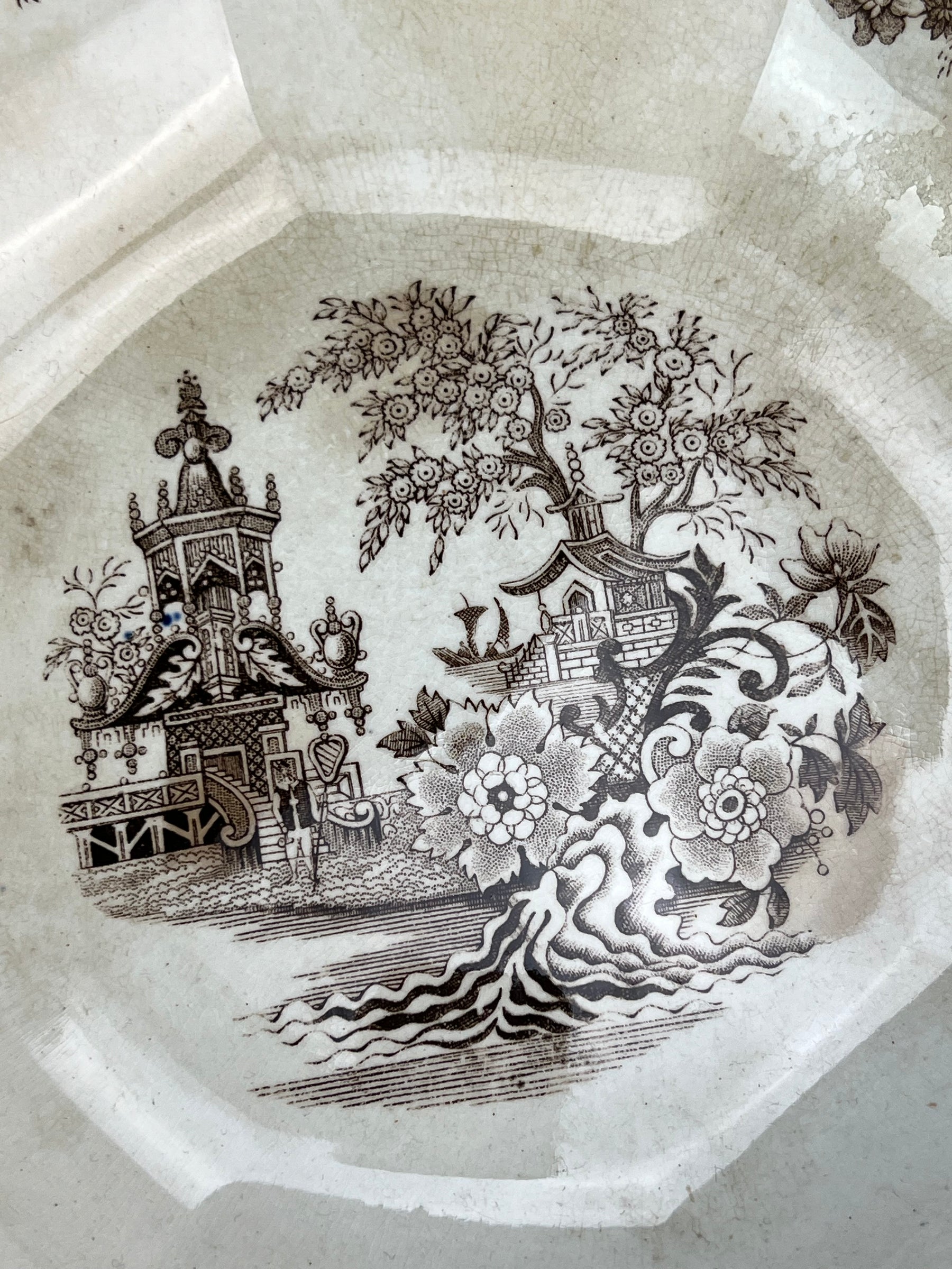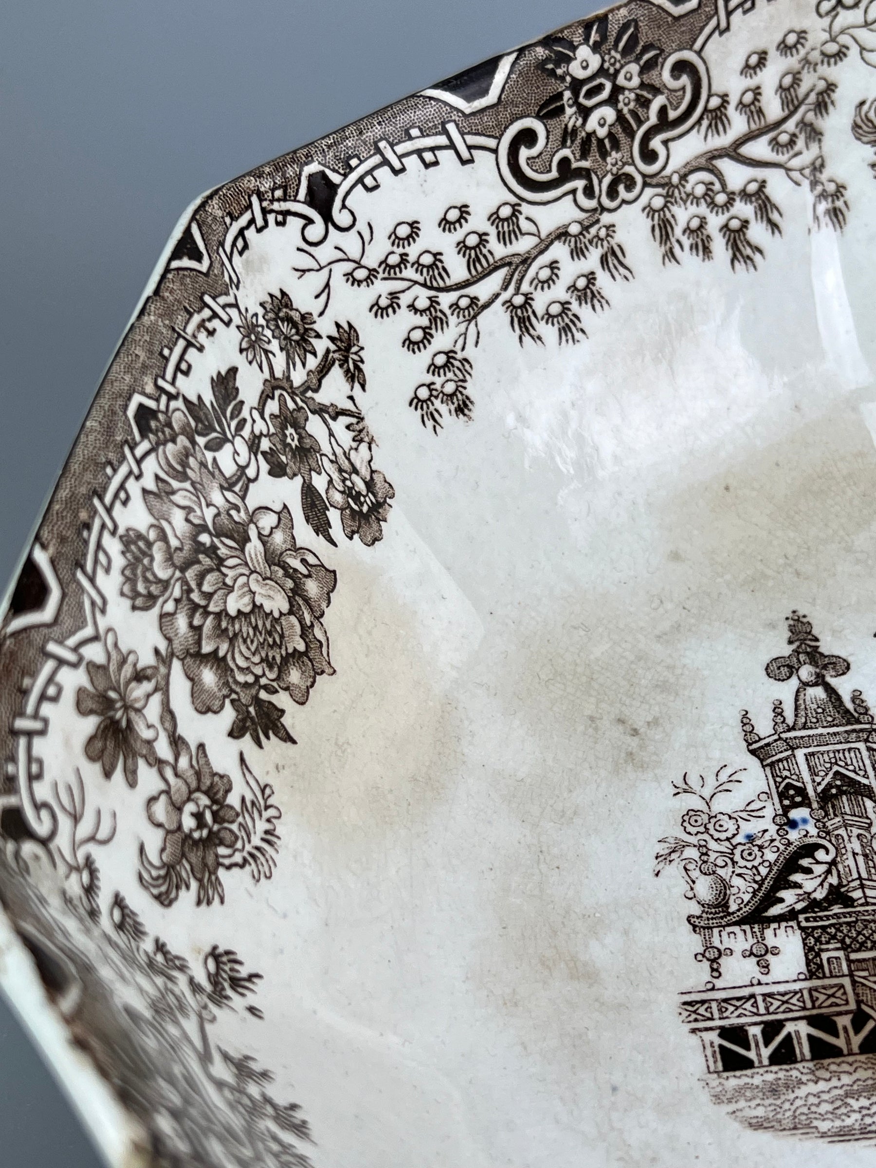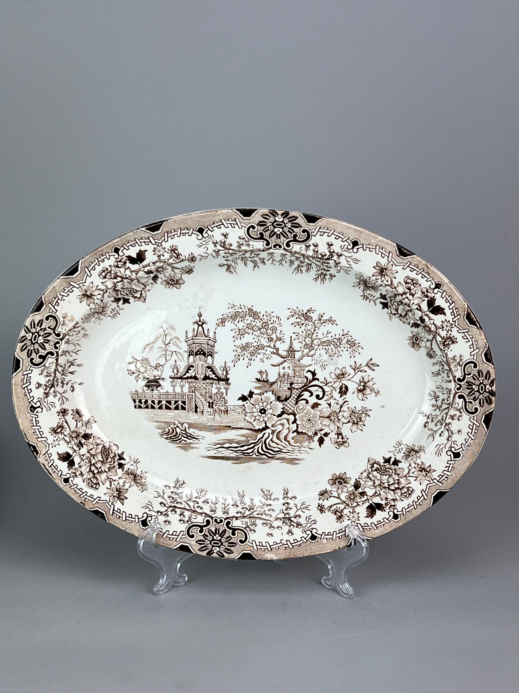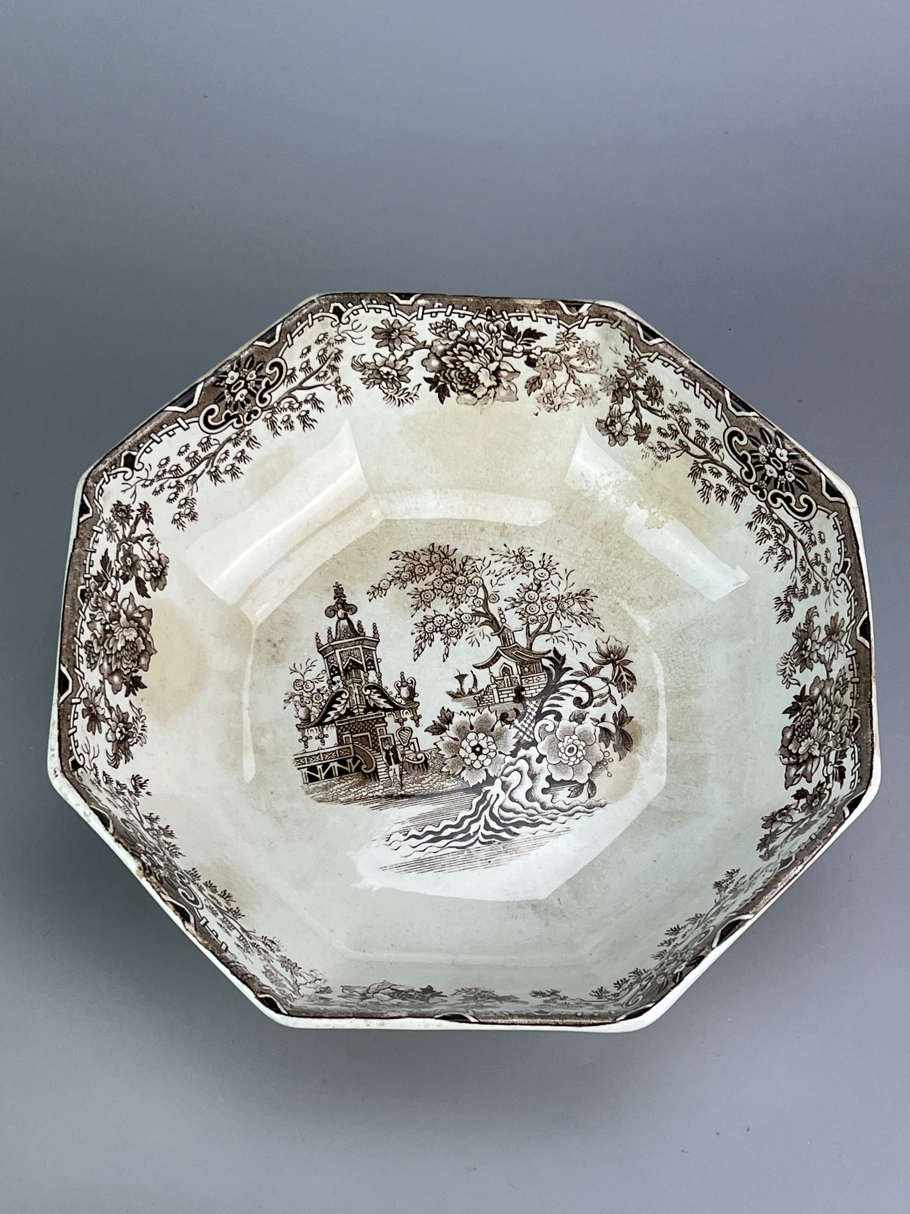 Servizio di piatti vintage SCR Colandine in porcellana con decoro marrone seppia, completo di zuppiera