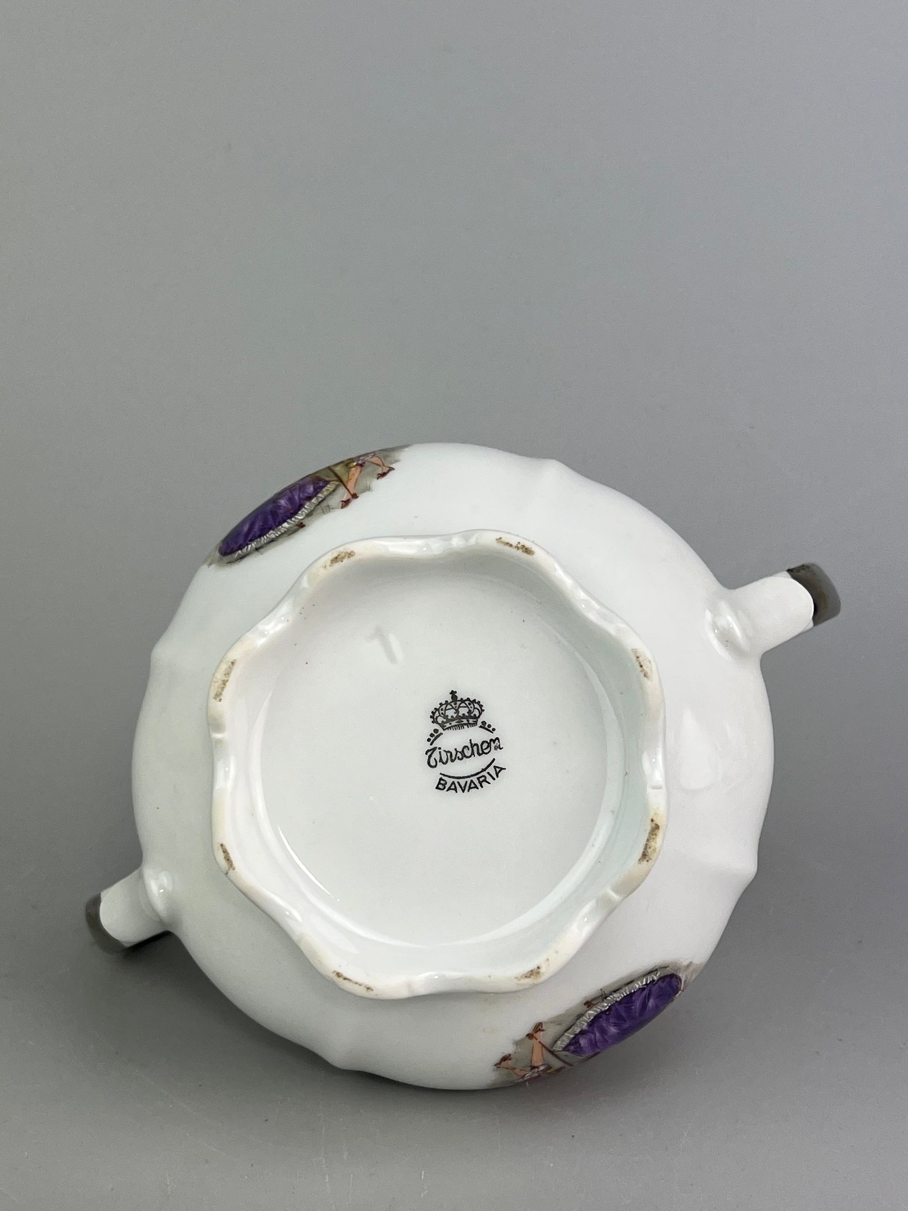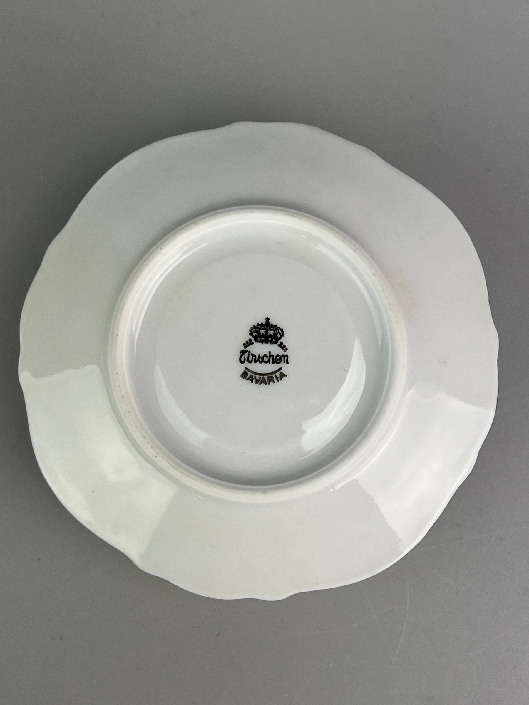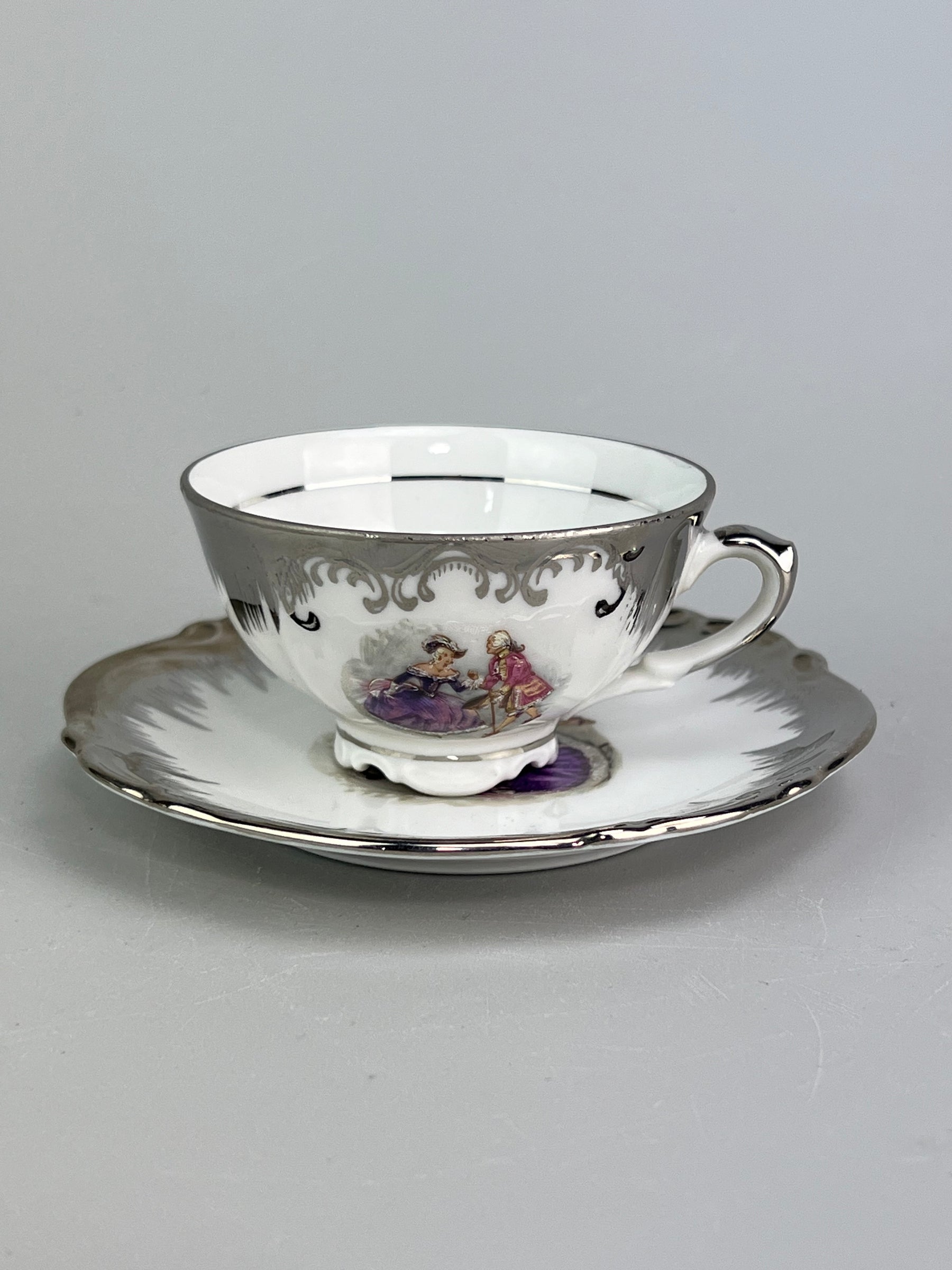 Servizio da tè in porcellana Bavaria Tirschenreuth con decori romantici e bordi in platino lucido