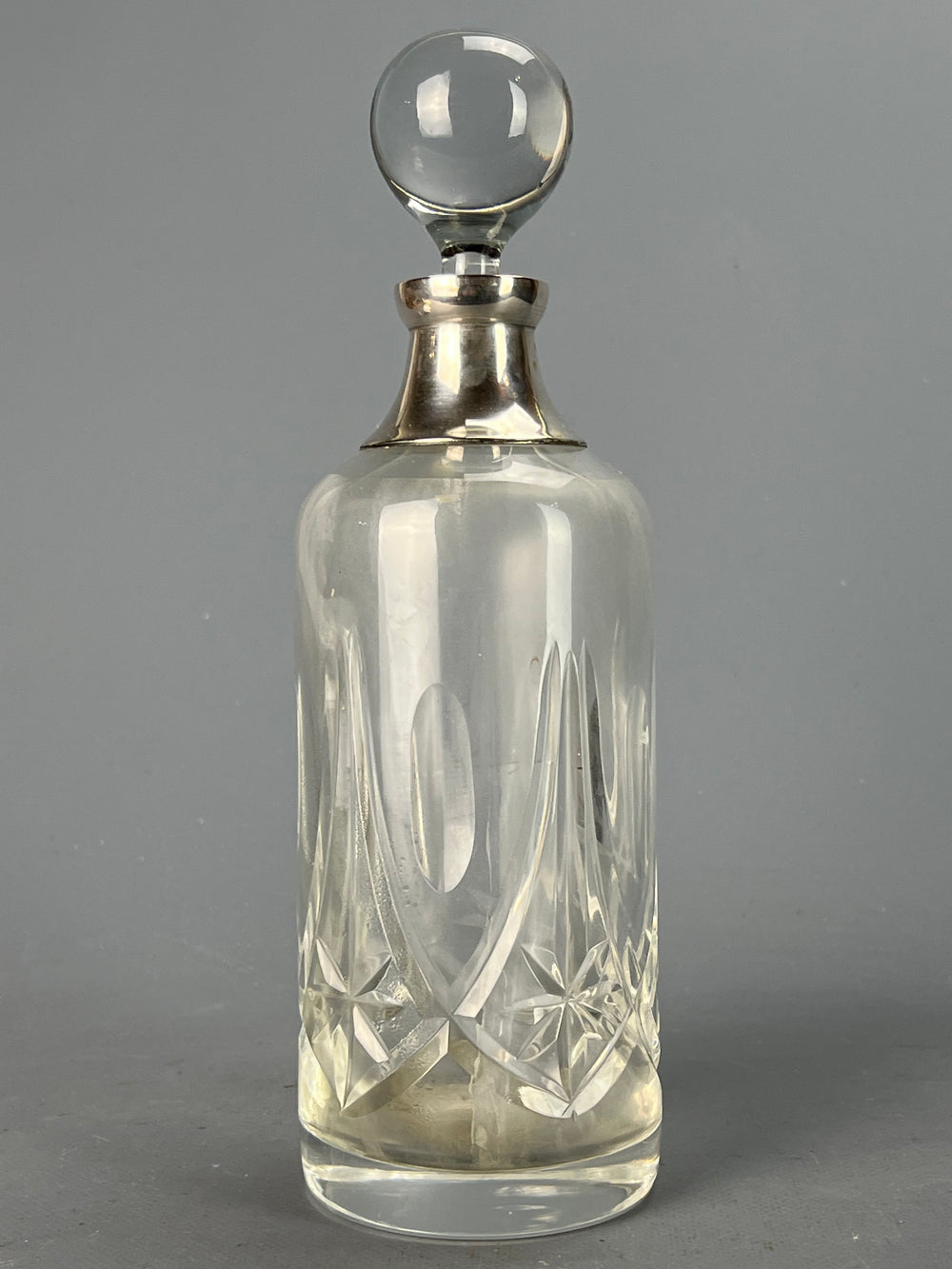 <p data-mce-fragment="1">Elegante bottiglia in cristallo lavorato vintage con motivo a stella.</p> <p data-mce-fragment="1">Sul collo è presente un inserto in argento punzonato.</p> <p data-mce-fragment="1">Misure: 9,5x9,5 cm, Altezza 18,5 cm</p>