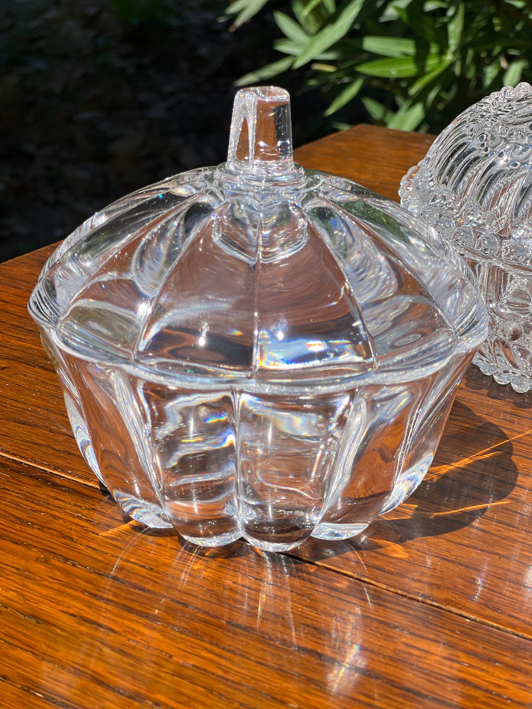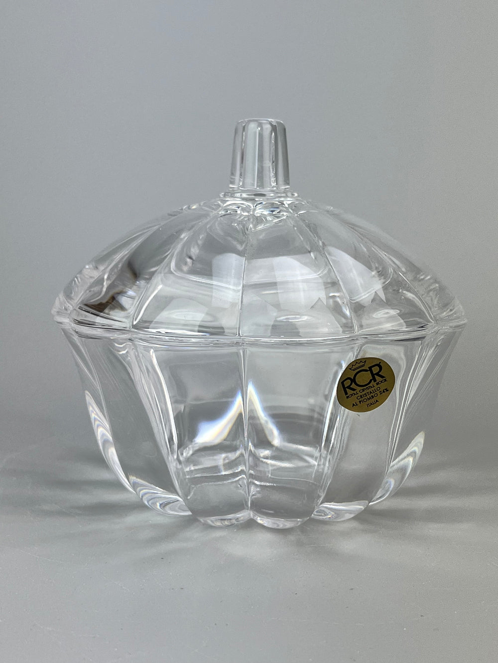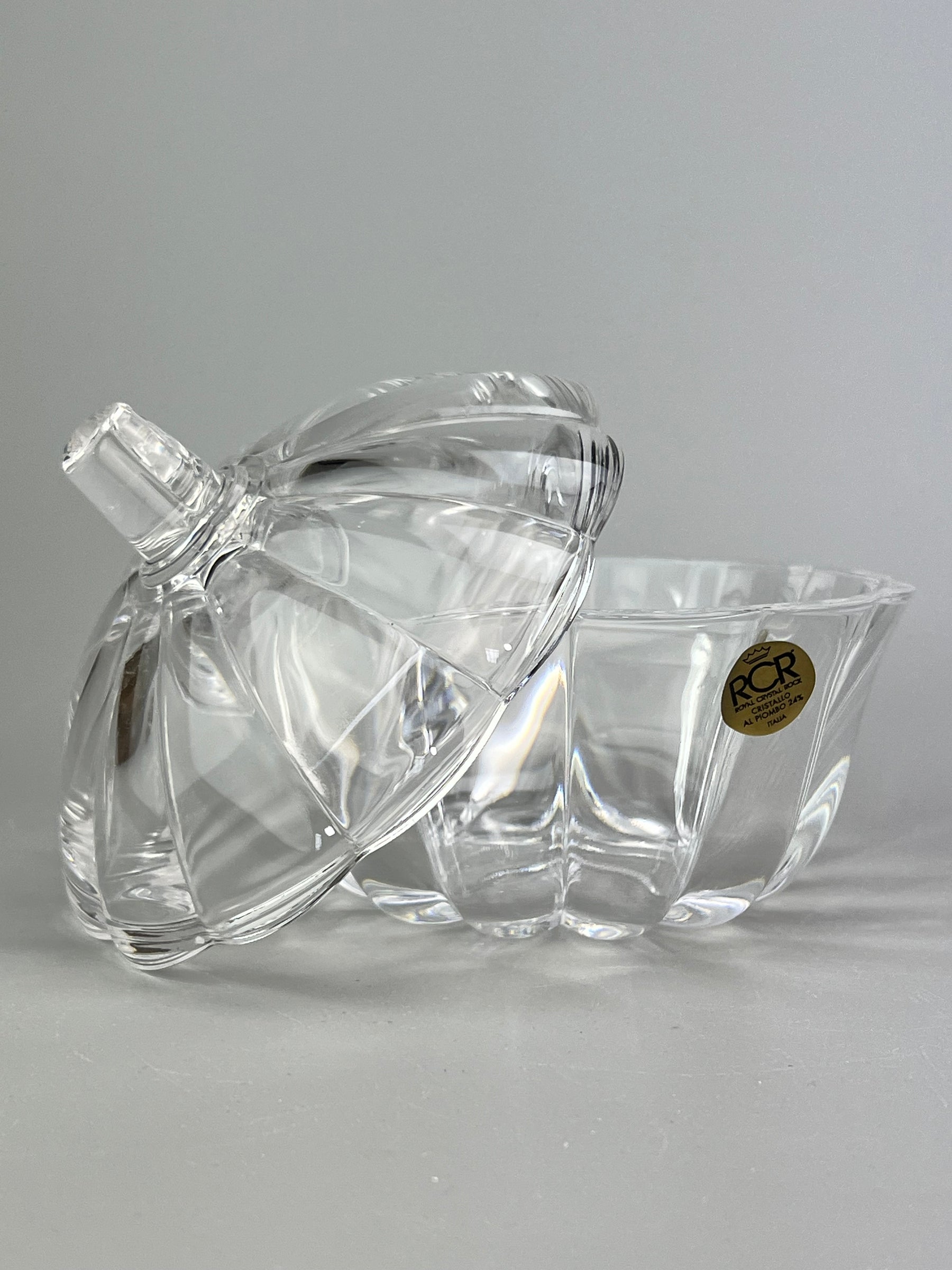 Un pezzo versatile: perfetto per contenere zuccherini, caramelle o piccoli oggetti, ma anche come decorazione da tavola o complemento per allestimenti eleganti e festivi. Ideale sia per ambienti classici che per interni più moderni, grazie alla purezza del vetro e al design senza tempo.