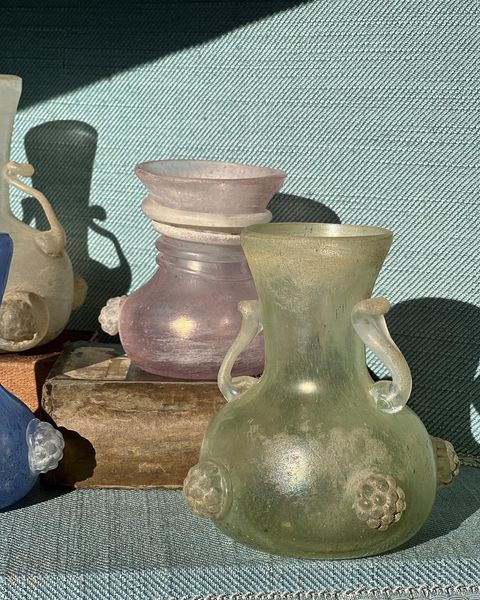 Vasetto stile scavo in vetro di Murano senza manici, soffiato a mano.