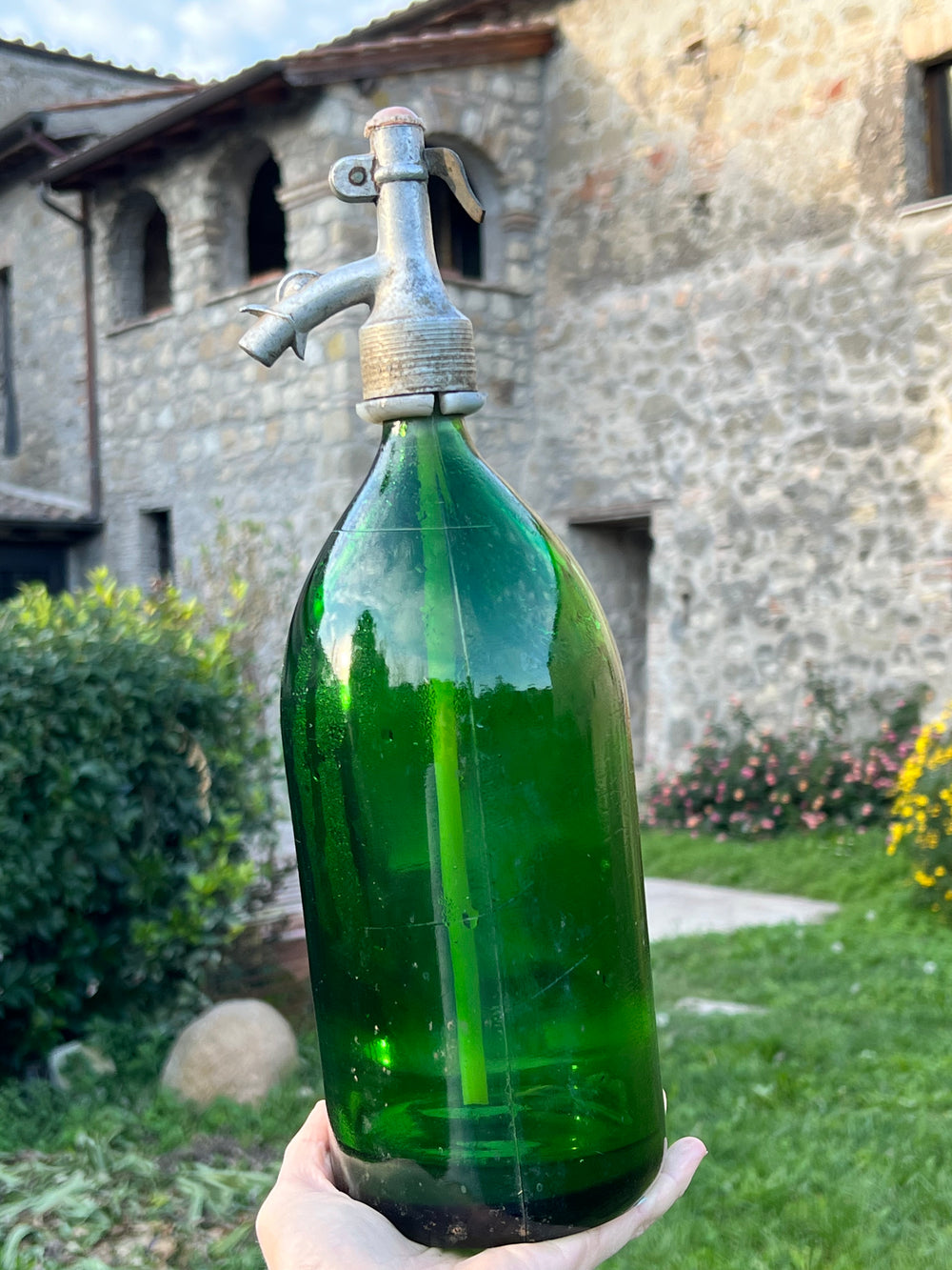 Dai un tocco di carattere al tuo arredamento con questo sifone seltz vintage in vetro verde.