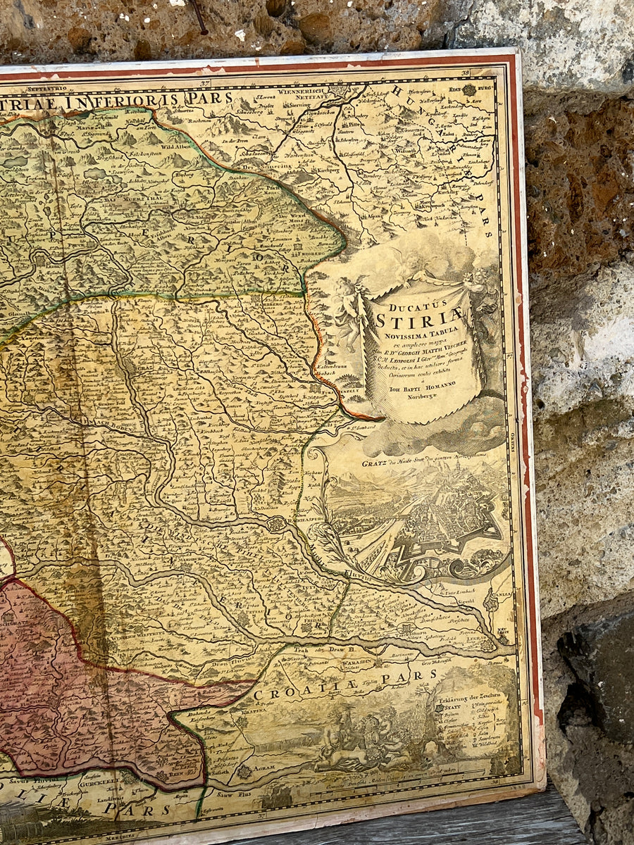 Bellissima mappa del Ducato di Stiria fatta dal cartografo Johann Baptist Homann nei primi del Settecento.